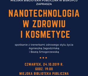 Miejska Biblioteka Publiczna w Biskupcu zaprasza w czwartek 24 października na spotkanie z trenerami zdrowego trybu życia - Agnieszką Jagodzińską i Beatą Smogorzewską "Nanotechnologia w zdrowiu i kosmetyce".