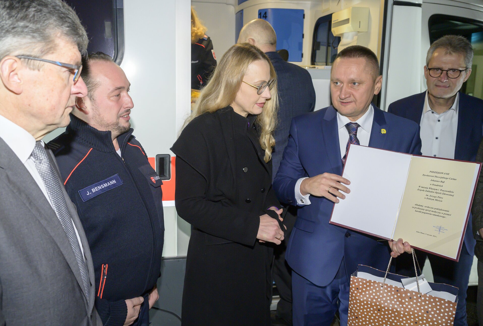 Podczas przekazania ambulansu niemiecki Caritas był reprezentowany przez Franza Lotha, Conrada Tönsinga oraz Günter Sandforta, co dodatkowo podkreślało zaangażowanie tej organizacji charytatywnej w pomoc społecznościom lokalnym.
