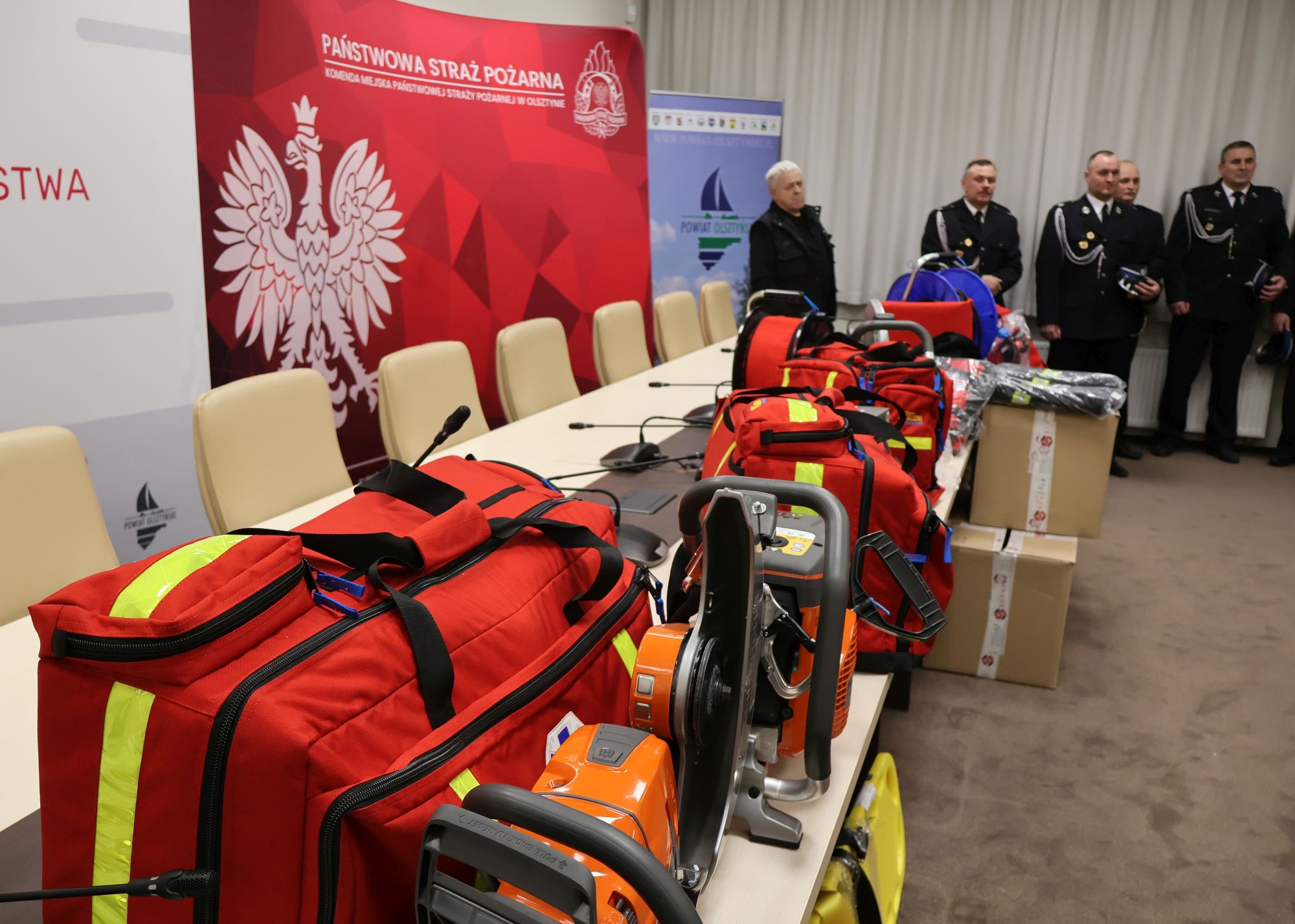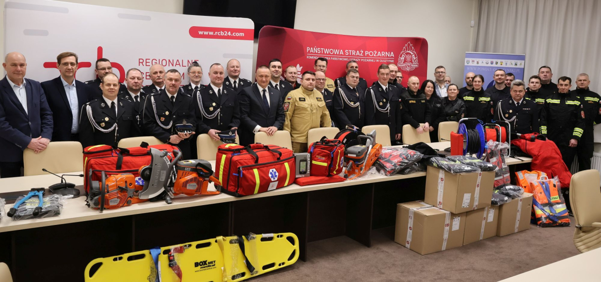 Na liście znalazły się m.in. piły do betonu i drewna, kilofy, nożyce do prętów, osuszacze do pomieszczeń, zbiorniki na wodę 200-litrowe, zestawy ratunkowe, wodery, węgorze ratownicze, koła ratownicze, siekiery, agregaty prądotwórcze. Trafiły one do jednostek OSP w Barczewie, Barczewku, Bartołtach Wielkich, Ramsowie, Brąswałdzie, Butrynach, Kieźlinach, Nowej Wsi, Klebarku Wielkim, Purdzie, Spręcowie, Tuławkach i Wrzesinie oraz JRG nr 1 KM PSP Olsztyn.
