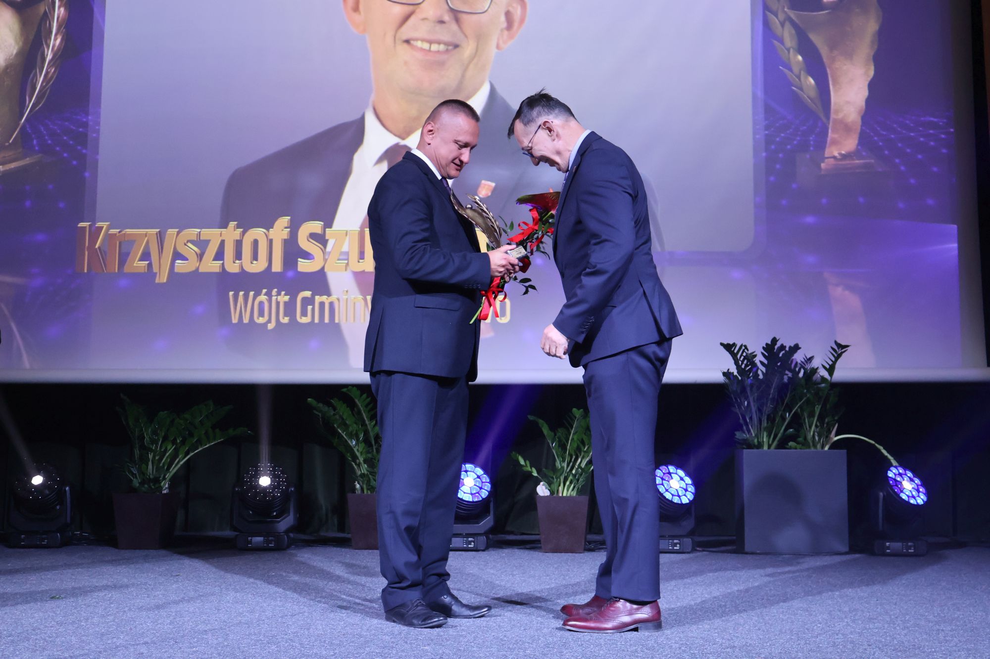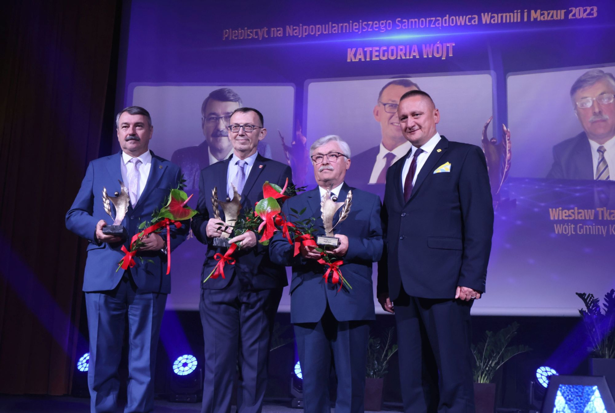 Starosta Andrzej Abako wręczył też statuetki zwycięzcom plebiscytu na Najpopularniejszego Samorządowca Warmii i Mazur 2023 r. w kategorii WÓJT. Zdobyli je Wiesław Tkaczuk, wójt Kiwit, Zygmunt Tucholski, wójt Elbląga i Krzysztof Szumała, wójt Milejewa. Gratulujemy!