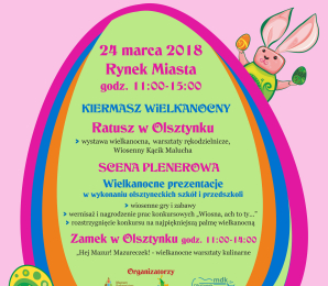 Tradycyjnie na tydzień przed świętami w Olsztynku odbędzie się jarmark wielkanocny. Już 24 marca olsztynecki rynek miejski wypełni się świątecznymi wypiekami, przysmakami i ozdobami. Odbędą się również prezentacje i warsztaty wielkanocne.