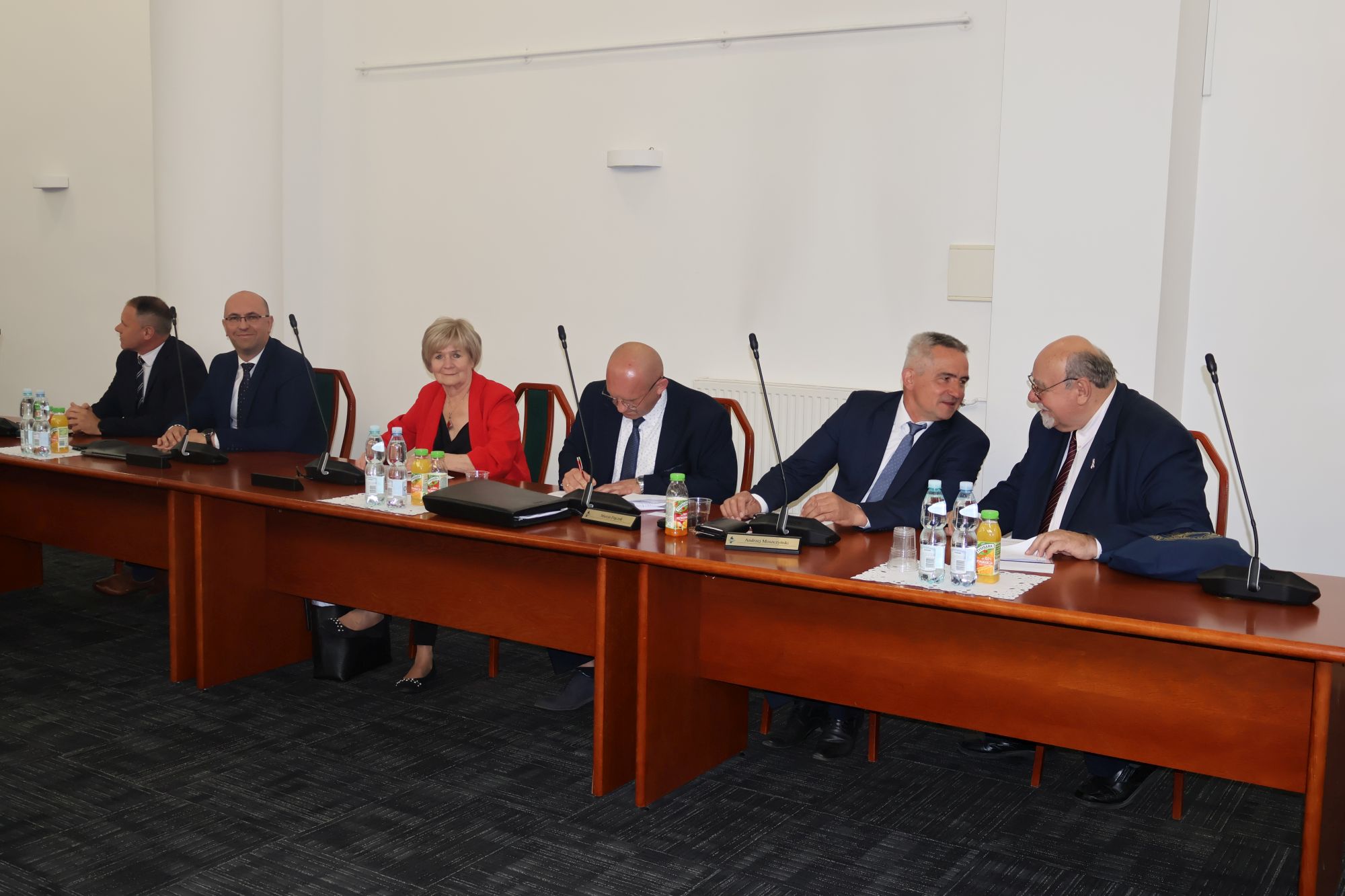 Zarząd Powiatu w Olsztynie. Od lewej: Joanna Michalska-Reda, członkini zarządu, Artur Wrochna, wicestarosta olsztyński, Andrzej Abako, starosta olsztyński,  Marcin Politewicz, członek zarządu, Janusz Radziszewski, członek zarządu