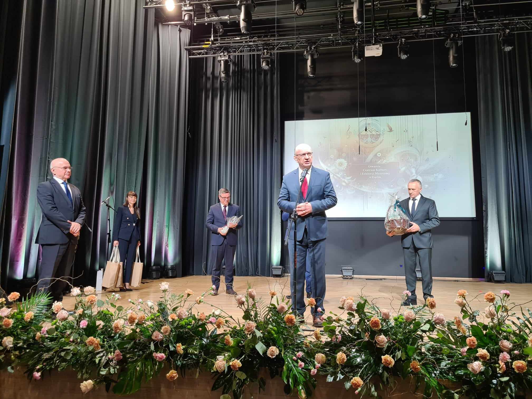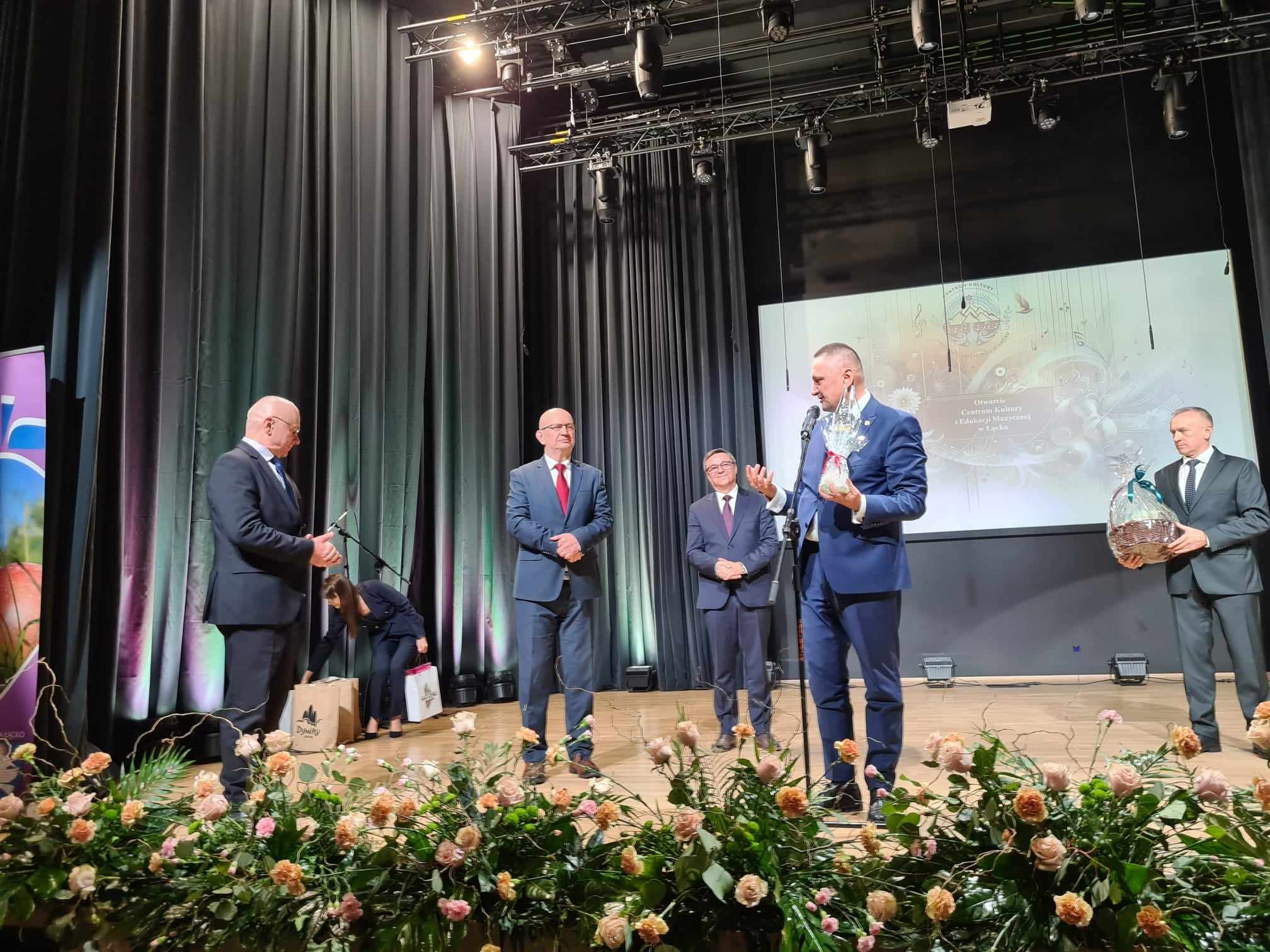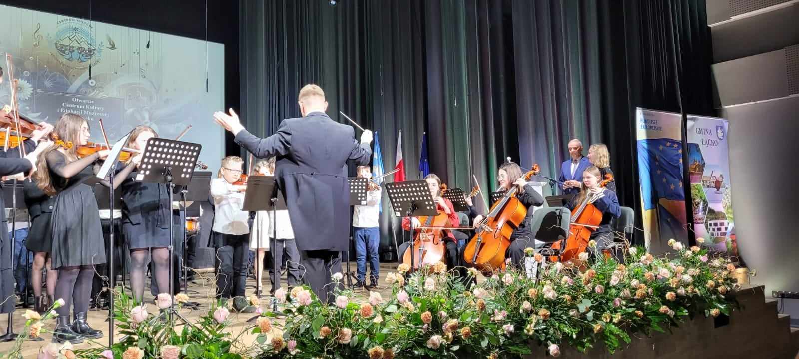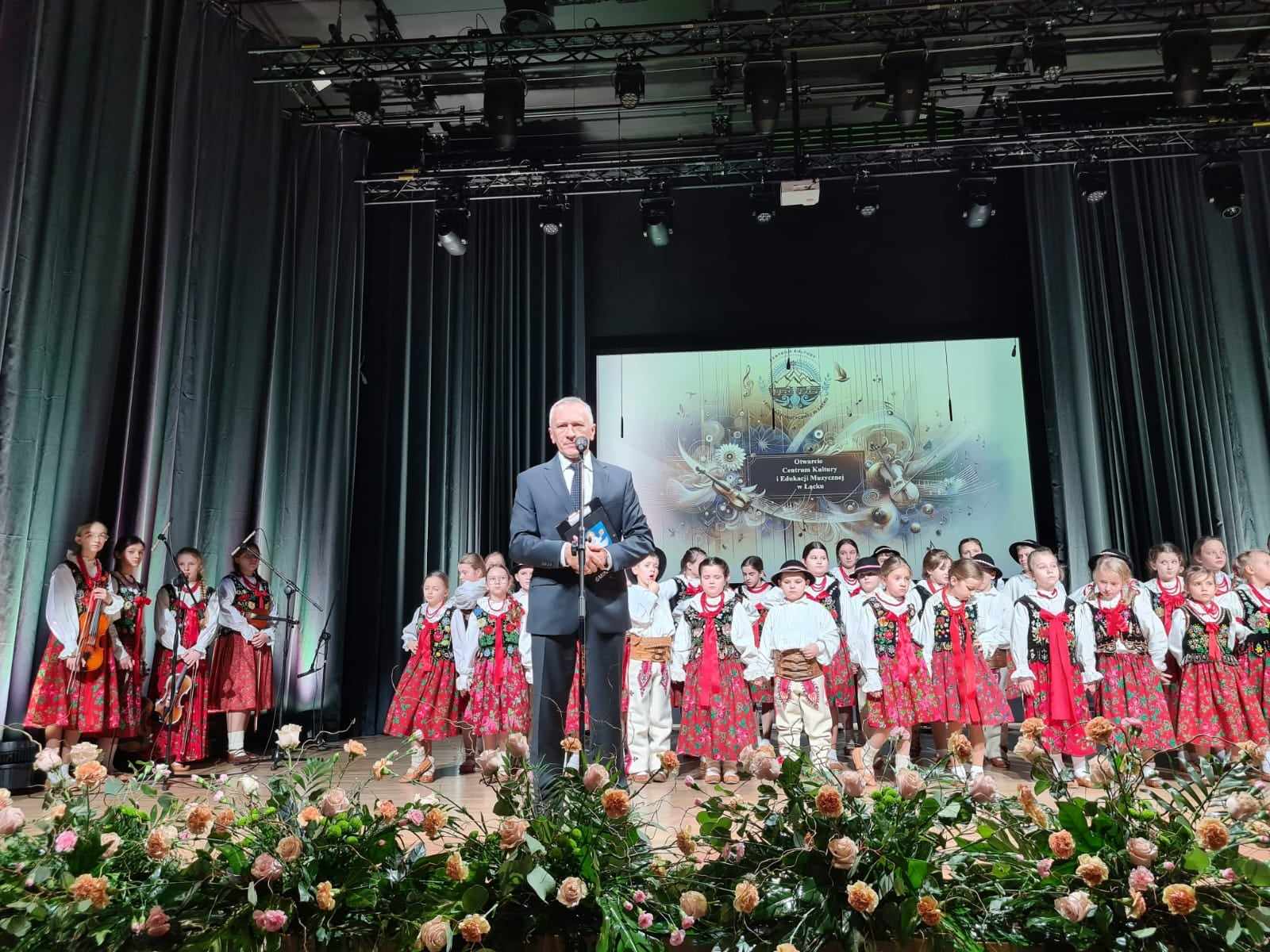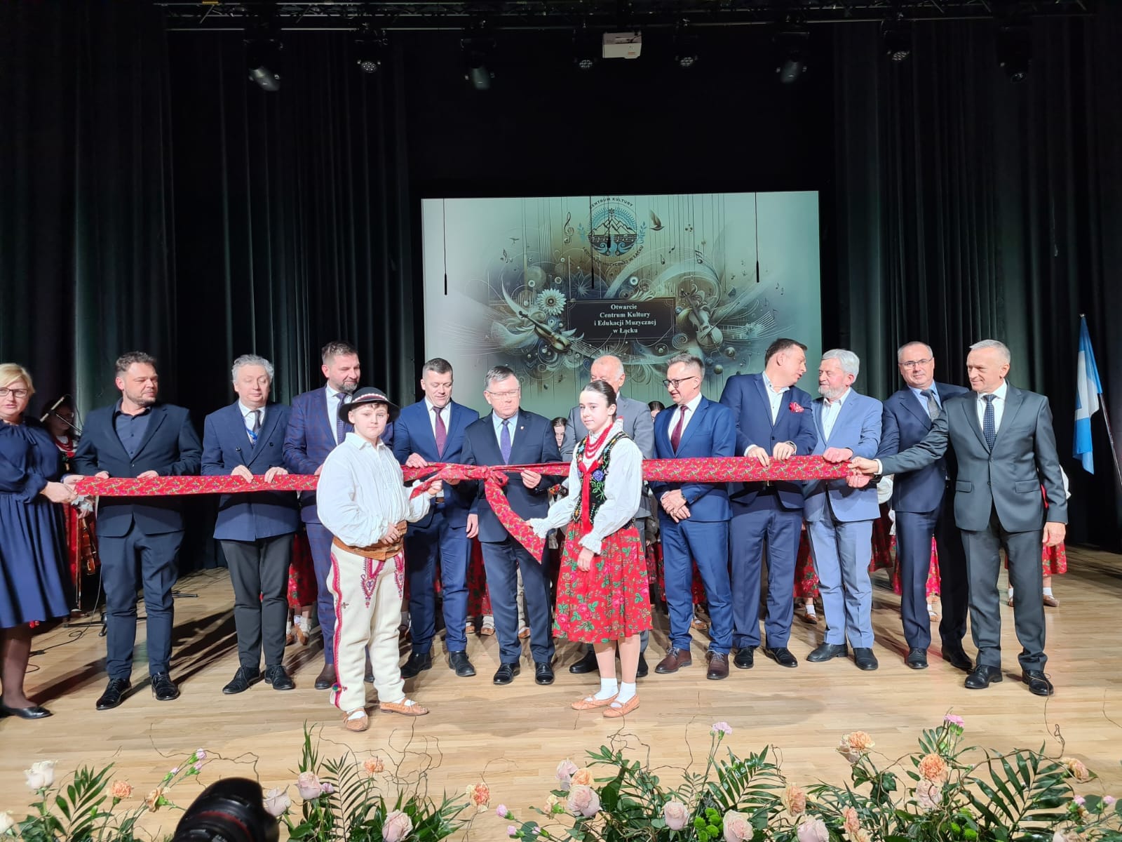 Warmińska delegacja na zaproszenie Jana Dziedziny, wójta Gminy Łącko, wzięła także udział w uroczystym otwarciu Centrum Kultury i Edukacji Muzycznej w Łącku. - To dla nas ważne miejsce. Obecnie przygotowujemy sie do budowy podobnego centrum, które połączy Samorządową Szkołę Muzyczną i Gminny Ośrodek Kultury w Dywitach. Szukając inspiracji do tej inwestycji trzy lata temu trafiliśmy na budowę Waszego Centrum, przyjechalismy do Łęcka i oglądaliśmy rozwiązania techniczne - mówił Andrzej Abako, wręczając wójtowi upominki związane z postacią Mikołaja Kopernika. Przekazał także szklanego Anioła Warmińskiego dyrektorowi CKiEM, a dyrektorowi tutejszej szkoły muzycznej wydawnictwo nutowe. - To "Wycinanki muzyczne", cykl miniatur instrumentalnych opartych na folklorze Warmii i Mazur. Mam nadzieję, że w przyszłości obie nasze szkoły muzyczne zagrają wspólny koncert - zaproponował A. Abako.