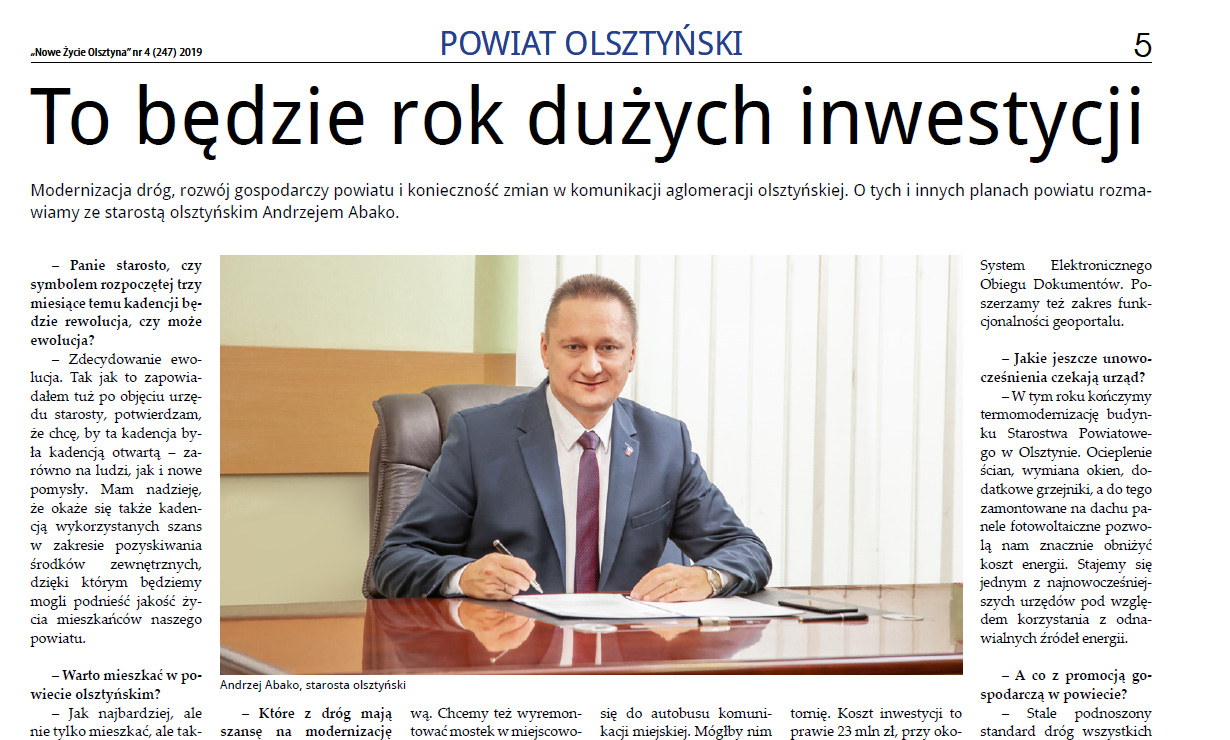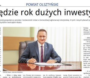 – Jest także mocno proinwestycyjny, ponieważ na 184 mln zł po stronie wydatków aż 75 mln zł przeznaczamy na inwestycje. Największa pula, bo 58 mln zł, trafi na modernizację dróg powiatowych. Co więcej, przez najbliższe 5 lat chcemy podwoić liczbę wyremontowanych dotąd kilometrów dróg. Od chwili utworzenia powiatów w 1999 roku powiat olsztyński przebudował 100 km. W 2025 roku chcemy dobić do 200 km.