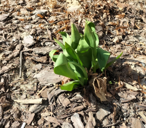 Dziś widać już także tu pierwsze oznaki wiosny, którą zwiastują wyłaniające się z ziemi tulipany Mikołaj Kopernik, odmiany stworzonej w 2009 roku przez dwóch holenderskich hodowców: Jana Ligtharta i Roberta J. Zandbergena.