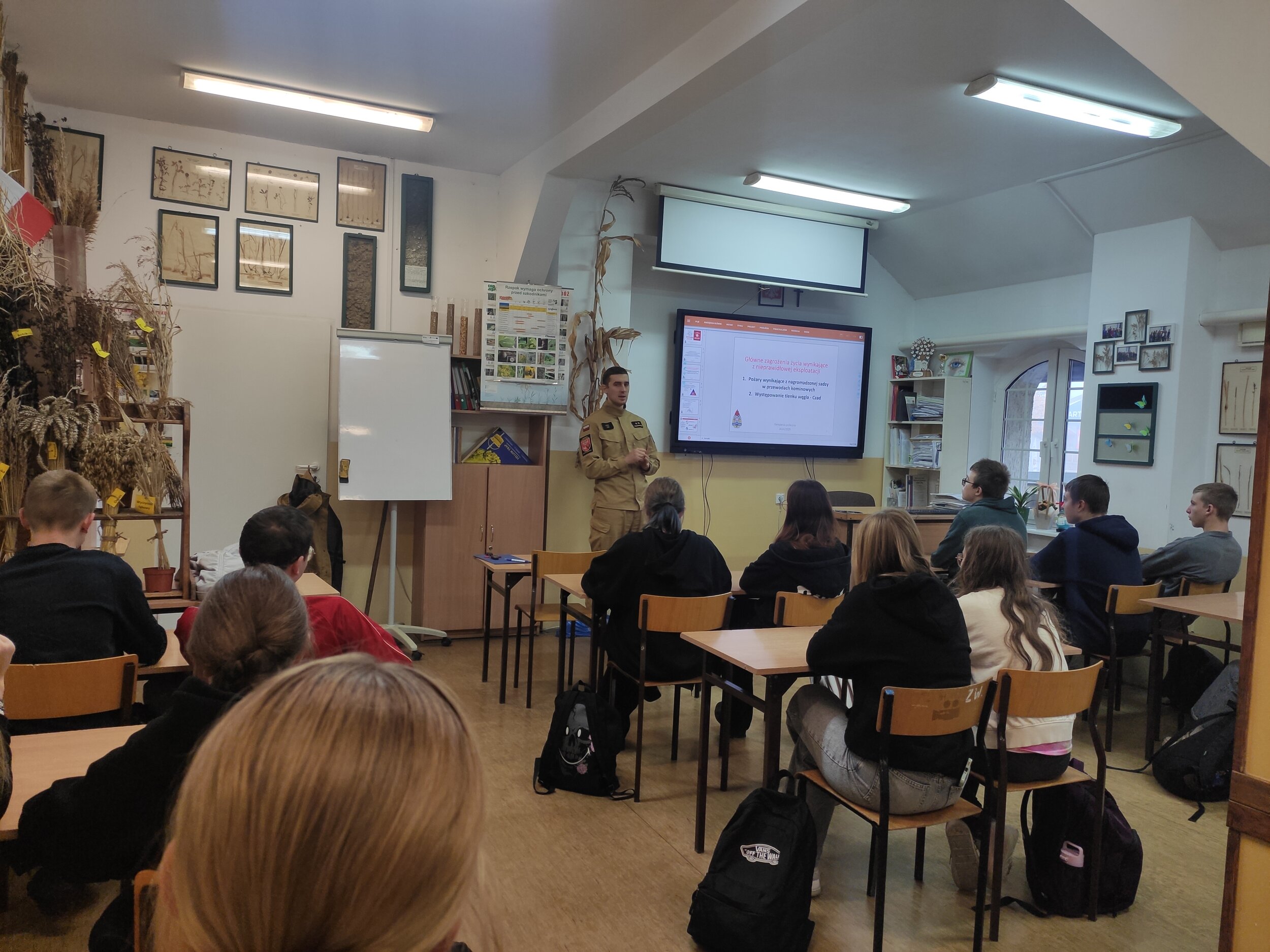 Wraz z rozpoczęciem sezonu grzewczego Wydział Bezpieczeństwa i Zarządzania Kryzysowego Starostwa Powiatowego w Olsztynie we współpracy z Komendą Miejską Państwowej Straży Pożarnej w Olsztynie przeprowadzili serie spotkań edukacyjno-informacyjnych pn. „Czadowe lekcje” w szkołach ponadpodstawowych powiatu olsztyńskiego.