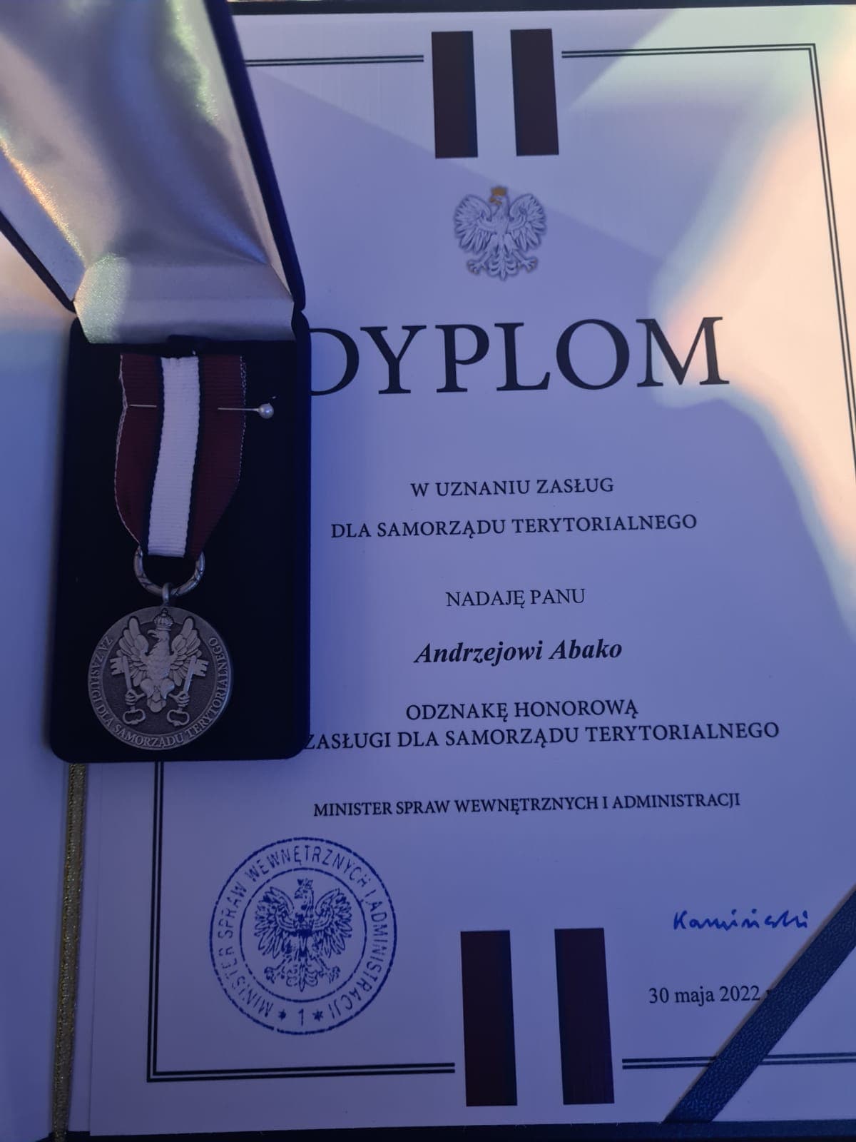 Podczas spotkania w Kancelarii Prezesa Rady Ministrów w ramach obchodów Dnia Samorządowca starosta olsztyński Andrzej Abako otrzymał z rąk Mariusza Kamińskiego - ministra spraw wewnętrznych i administracji oraz Pawła Szefernakera - sekretarza stanu odznakę honorową „Za Zasługi dla Samorządu Terytorialnego”.