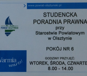Od 21 października mieszkańcy powiatu olsztyńskiego mogą skorzystać z bezpłatnych porad prawnych. W budynku Starostwa Powiatowego w Olsztynie (plac Bema 5) wznowiła działalność Studencka Poradnia Prawna, funkcjonująca w wyniku porozumienia władz Powiatu Olsztyńskiego i Wydziału Prawa i Administracji Uniwersytetu Warmińsko-Mazurskiego. Z samych tylko rejestracji wynika, że w ubiegłym roku akademickim z porad skorzystało 150 osób, ale tak naprawdę zainteresowanych było dużo więcej. - Docierają do nas sygnały, że Studencka Poradnia Prawna to dobry pomysł - mówi Mirosław Pampuch, starosta olsztyński. - Dla niektórych osób często jest to jedyna forma pomocy prawnej, jaką mogą uzyskać bezpłatnie. W związku z dużym zainteresowaniem została więc zwiększona liczba dni, w jakie jest otwarta Studencka Poradnia Prawna - są to wtorki, środy i czwartki.