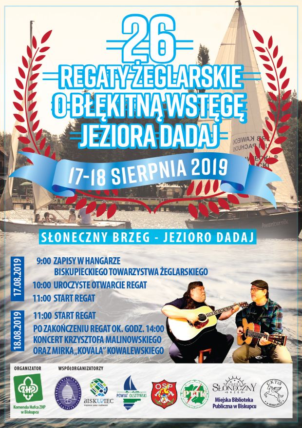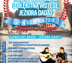 17 i 18 sierpnia rozegrane zostaną Regaty Żeglarskie „O Błękitną Wstęgę jeziora Dadaj”.Wszyscy, którzy choć raz posmakowali żeglowania na jeziorze Dadaj zgadzają się, że to jedno z piękniejszych miejsc na Warmii i Mazurach do uprawiania tego sportu – niezatłoczone i spokojne. Od ponad 25 lat organizowane są tu regaty, w których biorą udział zarówno żeglarze pływający od początków tej imprezy, jak i ci, którzy decydują się wziąć w nich udział po raz pierwszy. Na jednych i na drugich w tym roku czeka dwudniowa impreza 17 i 18 sierpnia.