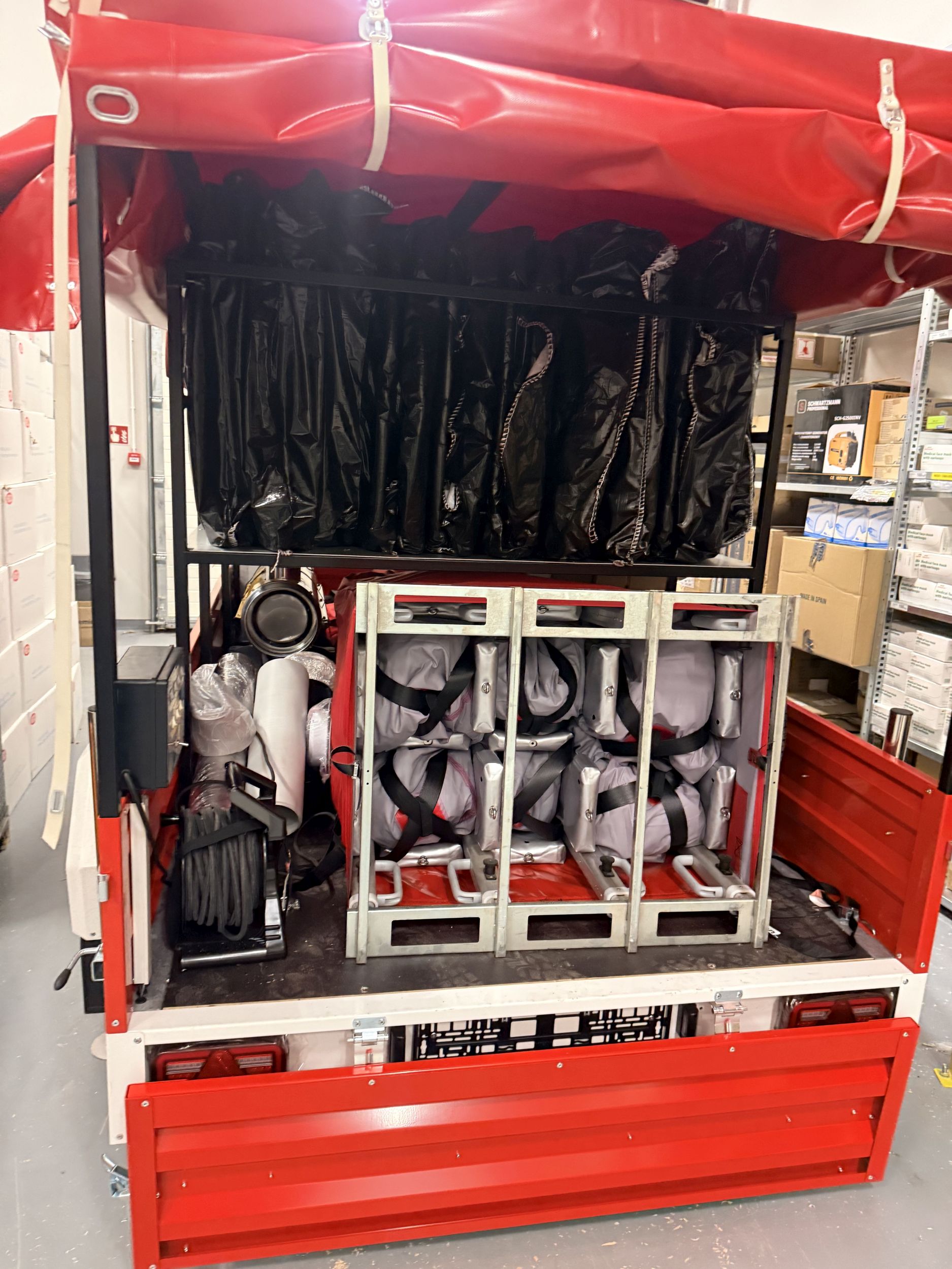 Wśród najważniejszych inwestycji znajduje się koparko‑ładowarka, która będzie wykorzystywana do zabezpieczenia logistycznego oraz usuwania skutków zdarzeń kryzysowych, takich jak podtopienia, uszkodzenia infrastruktury czy klęski żywiołowe. Sprzęt usprawni działania służb podejmowane w terenie. Zakupiono również specjalistyczną przyczepę logistyczną przeznaczoną do zabezpieczenia działań ratowniczych. Jej wyposażenie pozwoli na szybkie dostarczenie niezbędnych materiałów i narzędzi, co przełoży się na sprawniejszą organizację akcji ratowniczych.
