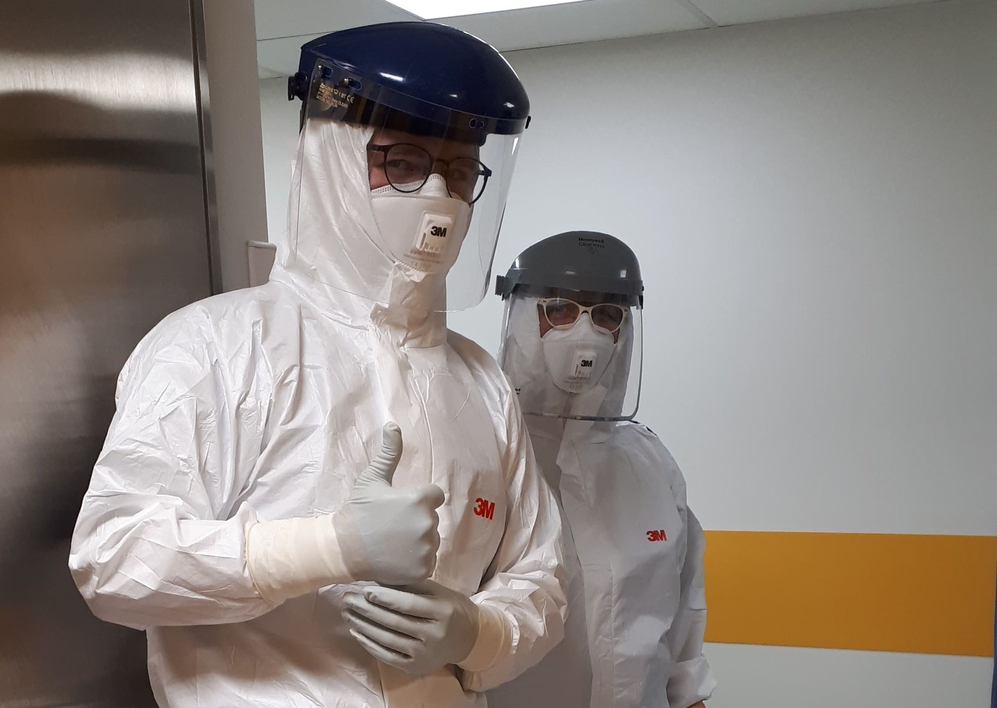 „Pozdrowienia od »kosmitów«” – napisali na fanpage’u Szpitala Powiatowego w Biskupcu jego pracownicy i pokazali jak od kilku miesięcy wygląda ich codzienna praca. W związku z pandemią spowodowaną wirusem Sars-CoV-2 wszystkie operacje prowadzone są w tzw. zwiększonym reżimie sanitarnym. Zabiegi na pacjentach zakażonych wymagają zachowania szczególnych środków ostrożności i pełnego zabezpieczenia personelu. Oznacza to m.in. konieczność stosowania strojów ochronnych widocznych na zdjęciach. W skład tego ochronnego okrycia wchodzą obowiązkowo rękawiczki, kombinezon i maska.