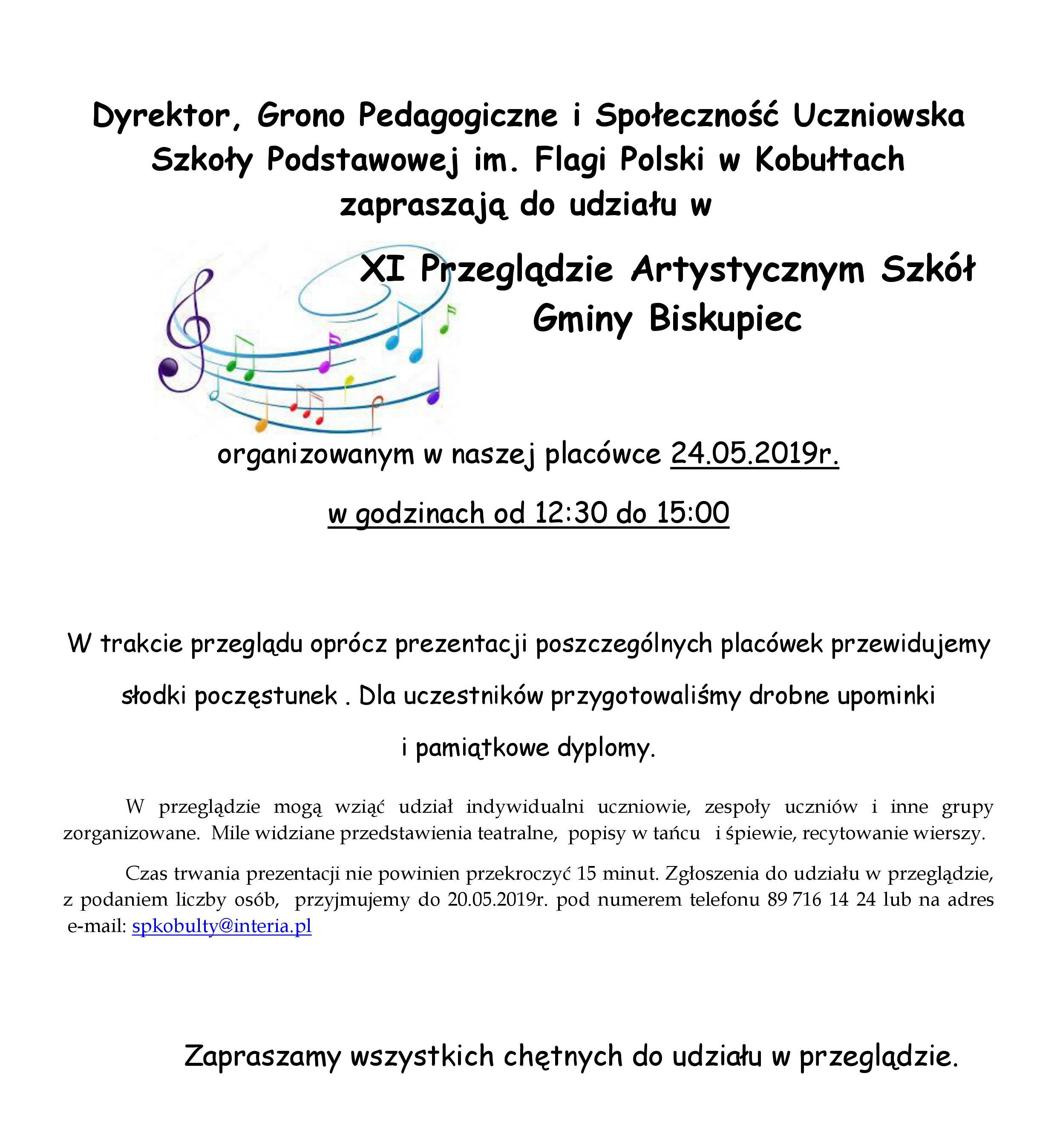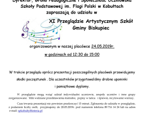 24 maja w Szkole Podstawowej w Kobułtach odbędzie się XI Przegląd Artystyczny Szkół Gminy Biskupiec.