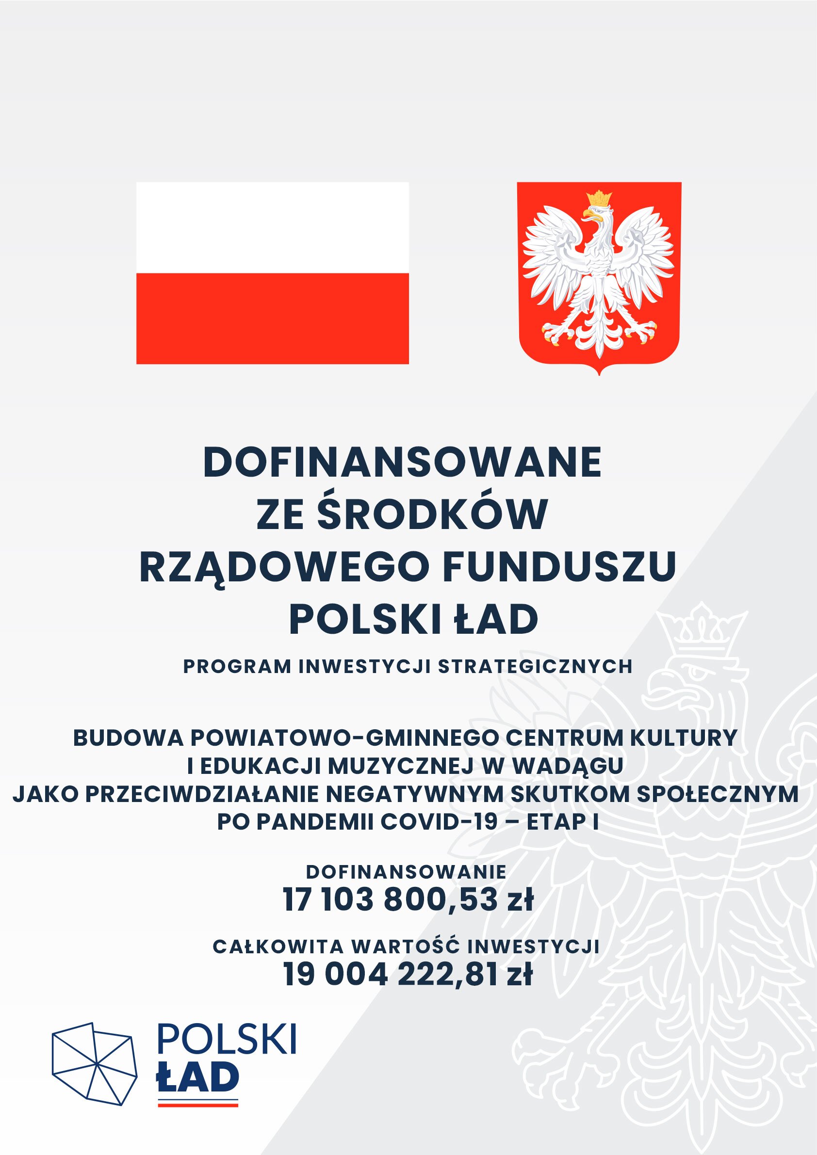Czteromiesięczne negocjacje z wykonawcą zakończyły się dziś podpisaniem umowy dotyczącej realizacji oczekiwanej przez mieszkańców regionu inwestycji – Powiatowo-Gminnego Centrum Kultury i Edukacji Muzycznej w Wadągu w gm. Dywity, które tworzyć będą trzy spójne architektonicznie obiekty, w którym funkcjonować będą: Samorządowa Szkoła Muzyczna, Gminny Ośrodek Kultury, Sala Warmińskich Inicjatyw Kulturalno-Muzycznych, Biblioteka Publiczna, Galeria Twórczości Warmińskiej, sale warsztatowe, zarządzane przez samorządy: Powiatu olsztyńskiego i gminy Dywity.