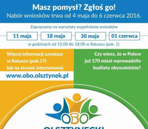 Masz pomysł, ale nie wiesz jak go zrealizować? Pomożemy Ci! Najbliższe warsztaty wypełniania wniosków odbędą się w środę 18 maja w godz. 15:00-18:00 w Ratuszu w Olsztynku (pok. 1).Przygotowując projekt można skorzystać z punkt informacyjno-konsultacyjny, który znajduje się w pok. Nr 17 w Urzędzie lub wziąć udział w warsztatach wypełniania wniosków, które odbędą się 11, 17 i 30 maja oraz 1 czerwca. Podczas warsztatów pracownicy Urzędu Miejskiego w Olsztynku będą udzielać informacji między innymi w zakresie: