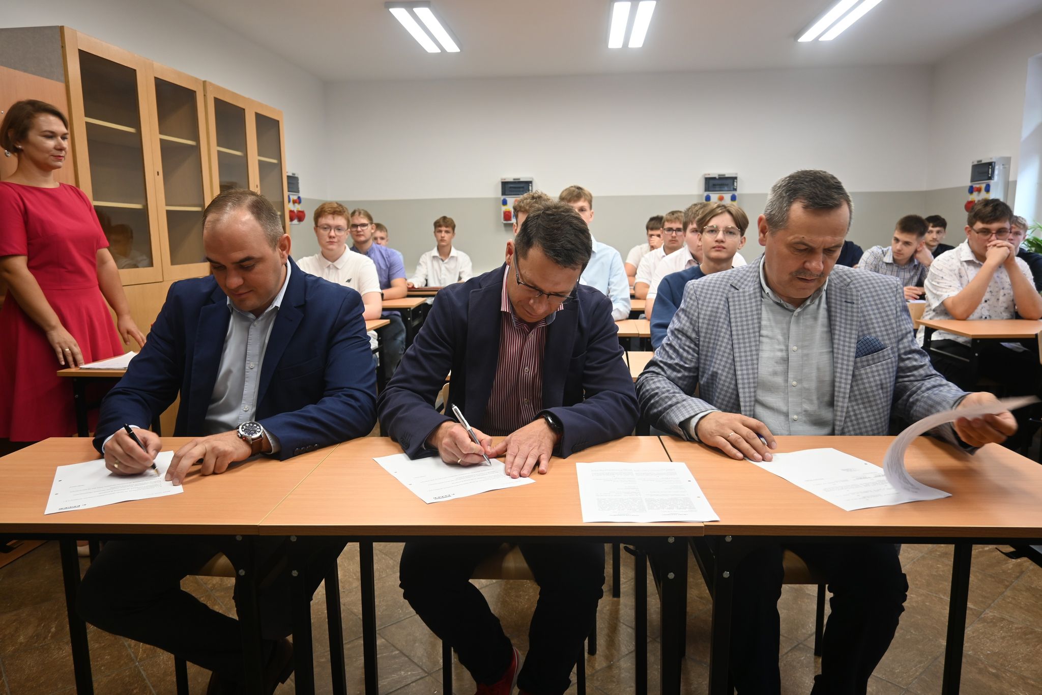W uroczytości wzięli udział Andrzej Abako, starosta olsztyński, Kamil Kozłowski, burmistrz Biskupca, Waldemar Zawiślak i Ovidiu Olari z zarządu Egger Biskupiec oraz Barbara Guga, dyrektor Wydziału Oświaty, Kultury i Kultury Fizycznej w Starostwie Powiatowym w Olsztynie. Klasa patronacka jako element kształcenia dualnego jest odpowiedzią na wymagania rynku pracy i rozwoju technologicznego. Korzyści czerpią zarówno uczeń, firma, jak i szkoła. - Uczniowie współpracują ze specjalistami, obsługują nowoczesny sprzęt, nabierają zawodowego obycia. To kapitał, który pozwoli im na bezpośrednie przejście z etapu edukacji do pierwszej pracy. Z kolei firma Egger za chwilę zdobędzie zaufany i odpowiedzialny zespół ludzi z odpowiednimi kwalifikacjami - mówił starosta Andrzej Abako.