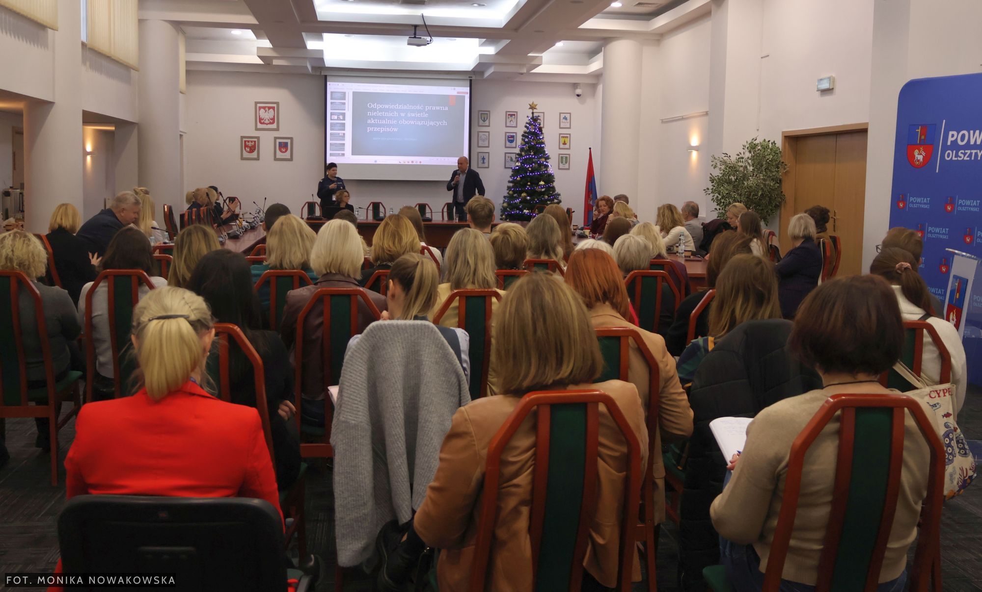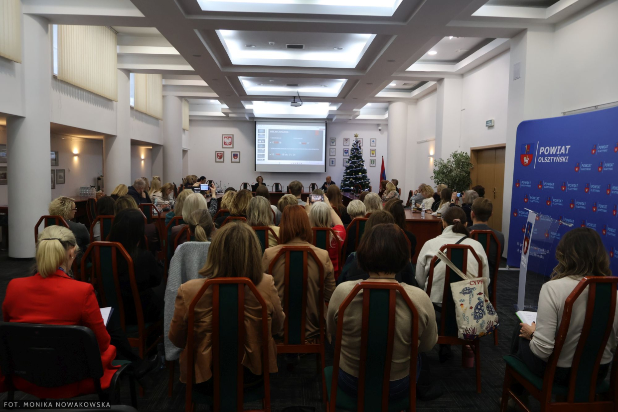 Uczestnicy debaty: dyrektorzy, pedagodzy i uczniowie szkół prowadzonych przez Powiat Olsztyński.