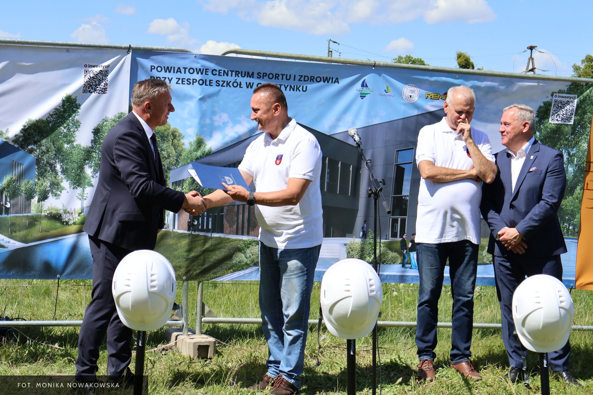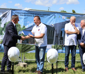 Oficjalne wbicie pierwszej łopaty zainicjowało budowę Powiatowego Centrum Sportu i Zdrowia przy Zespole Szkół w Olsztynku. Ten zaszczyt przypadł Andrzejowi Abako, staroście olsztyńskiemu, Arturowi Wrochnie, wicestaroście olsztyńskiemu, Bogusławowi Kowalewskiemu, zastępcy burmistrza Olsztynka, Ewie Orłowskiej, dyrektor Zespołu Szkół im. Krzysztofa Celestyna Mrongowiusza w Olsztynku, Robertowi Fronczkowi, prezesowi firmy Rembud. Uroczystość swoją obecnością uświetnił także Zbigniew Szczypiński, wicewojewoda warmińsko-mazurski.