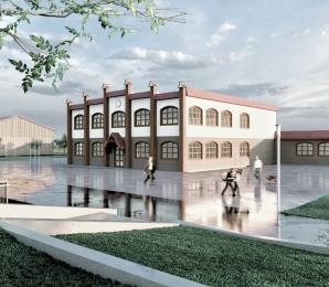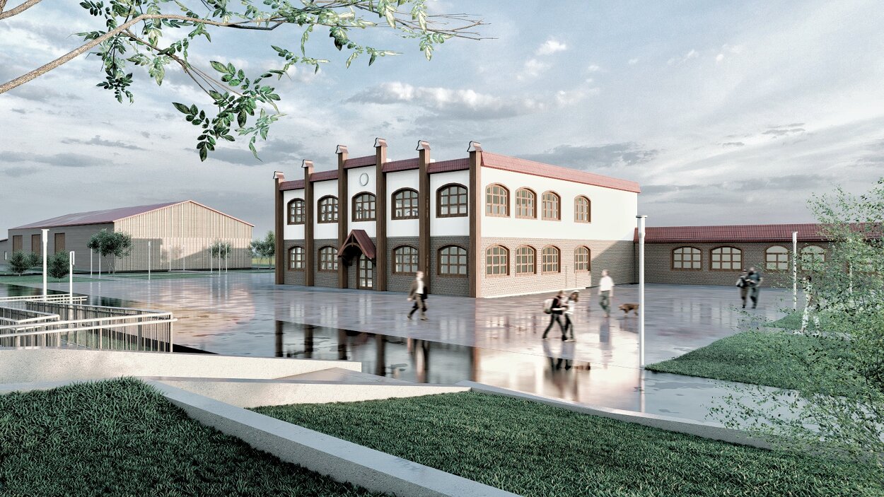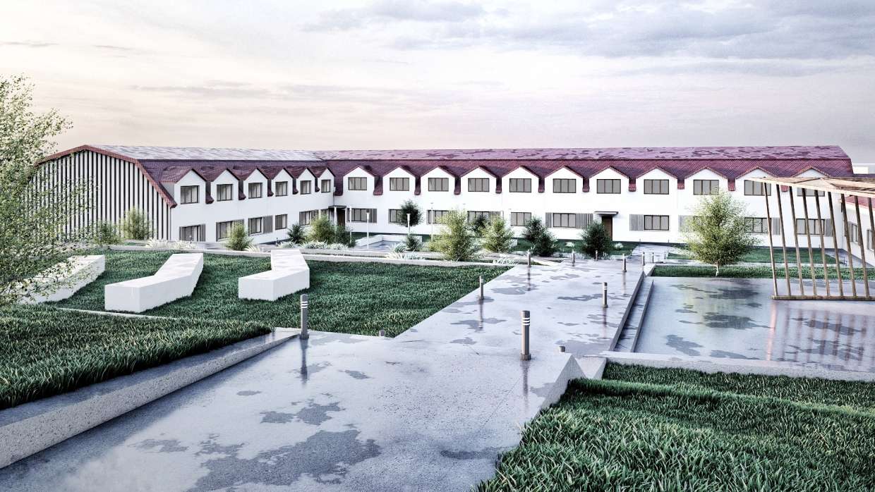 Pierwszy etap budowy obejmuje zaprojektowanie i budowę bursy dla uczniów ZSR. Ma ona pomieścić 48 uczniów w pokojach 2-osobowych lub 66 uczniów w konfiguracji pomieszczeń 3-osobowych w zależności od potrzeb szkoły. Obiekt zaprojektowano jako dwukondygnacyjny budynek w układzie zbliżonym do litery „C”, w architekturze typu folwarcznego nawiązującego do miejscowej zabudowy wiejskiej. W okresie nauki szkolnej obiekt będzie pełnił funkcję bursy, a w okresie wakacyjnym funkcję mieszkalną np. pod organizację obozów konnych dla młodzieży i kursów doskonalących z branży rolniczej.
