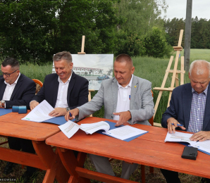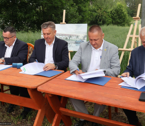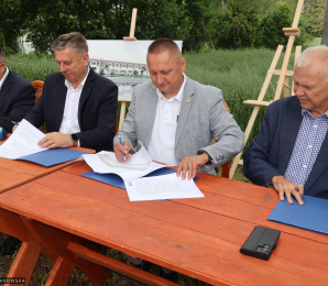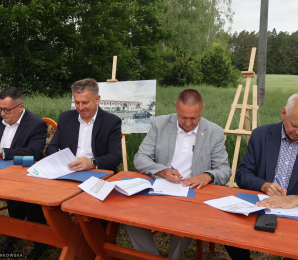 Film z podpisania umowy na budowę bursy ZSR w Smolajnach.