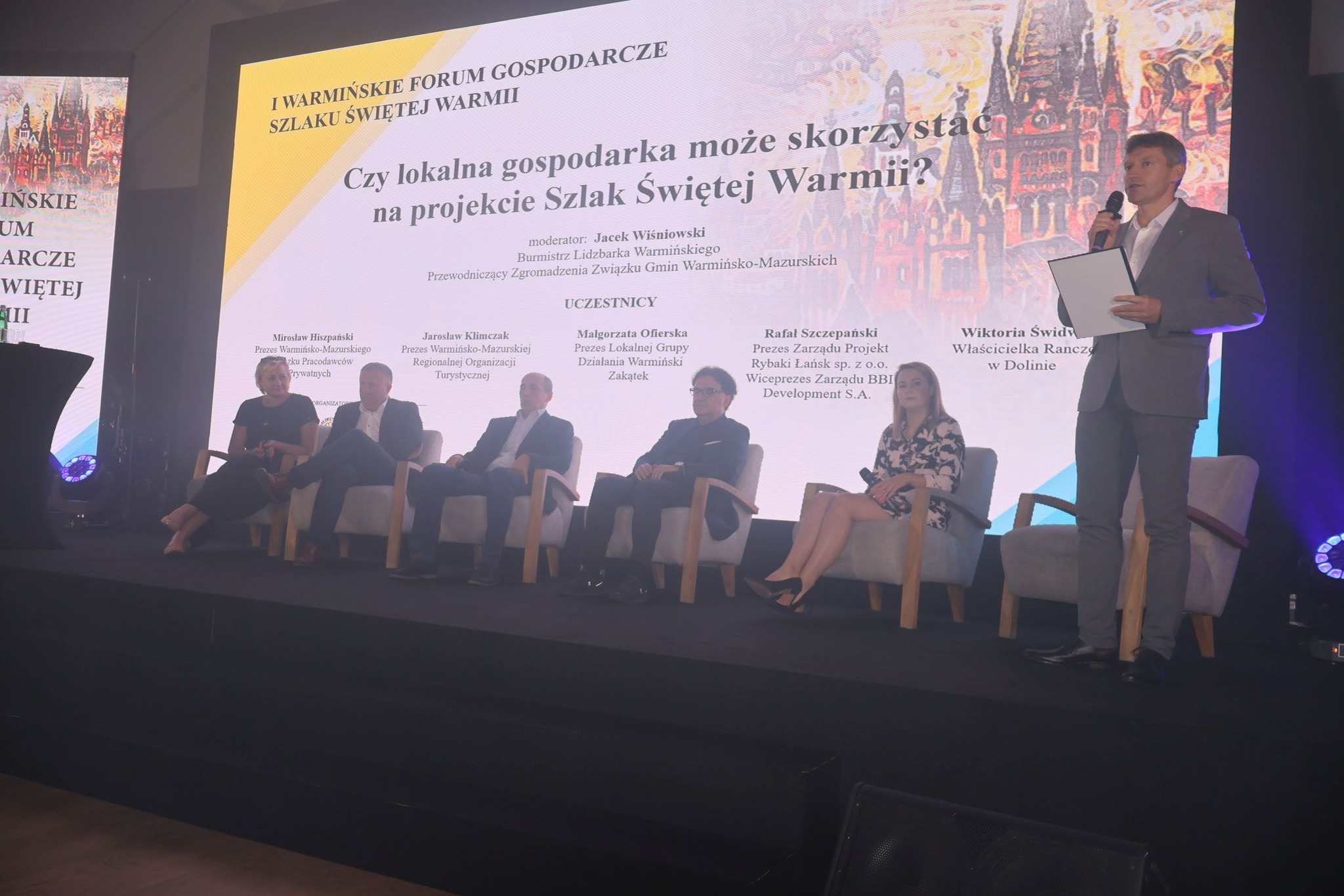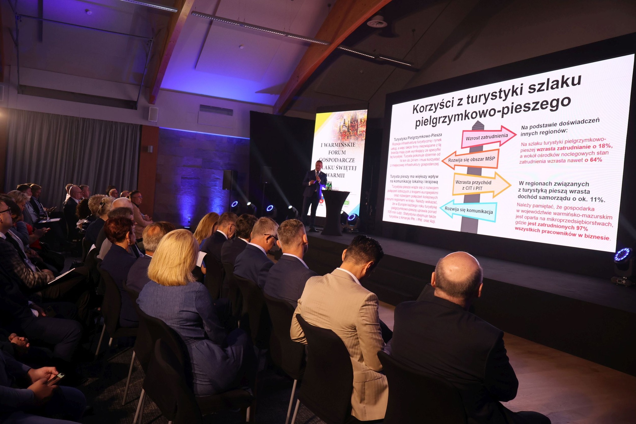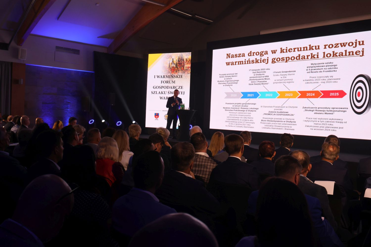 Stowarzyszenie Miast, Gmin i Powiatów Szlak Świętej Warmii skupia 33 samorządy. Zostało zawiązane w grudniu 2022 roku, a jego główną ideą jest promocja Warmii oraz rozwój turystyki i lokalnej gospodarki. Forum jest kolejną, po wręczeniu certyfikatów „Warnijskich kunsztyków”, inicjatywą stowarzyszenia. Sala konferencyjna hotelu Marina Club została podzielona na dwie części, w jednej miejsca zajęli przedstawiciele lokalnego biznesu i instytucji, w drugiej – równie licznie przybyli – samorządowcy przede wszystkim z terenu Warmii. W programie znalazły się wystąpienia osób związanych z turystyką, biznesem oraz finansami przeznaczonymi na rozwój małych i średnich przedsiębiorstw. Nie zabrakło rysu historycznego Warmii.