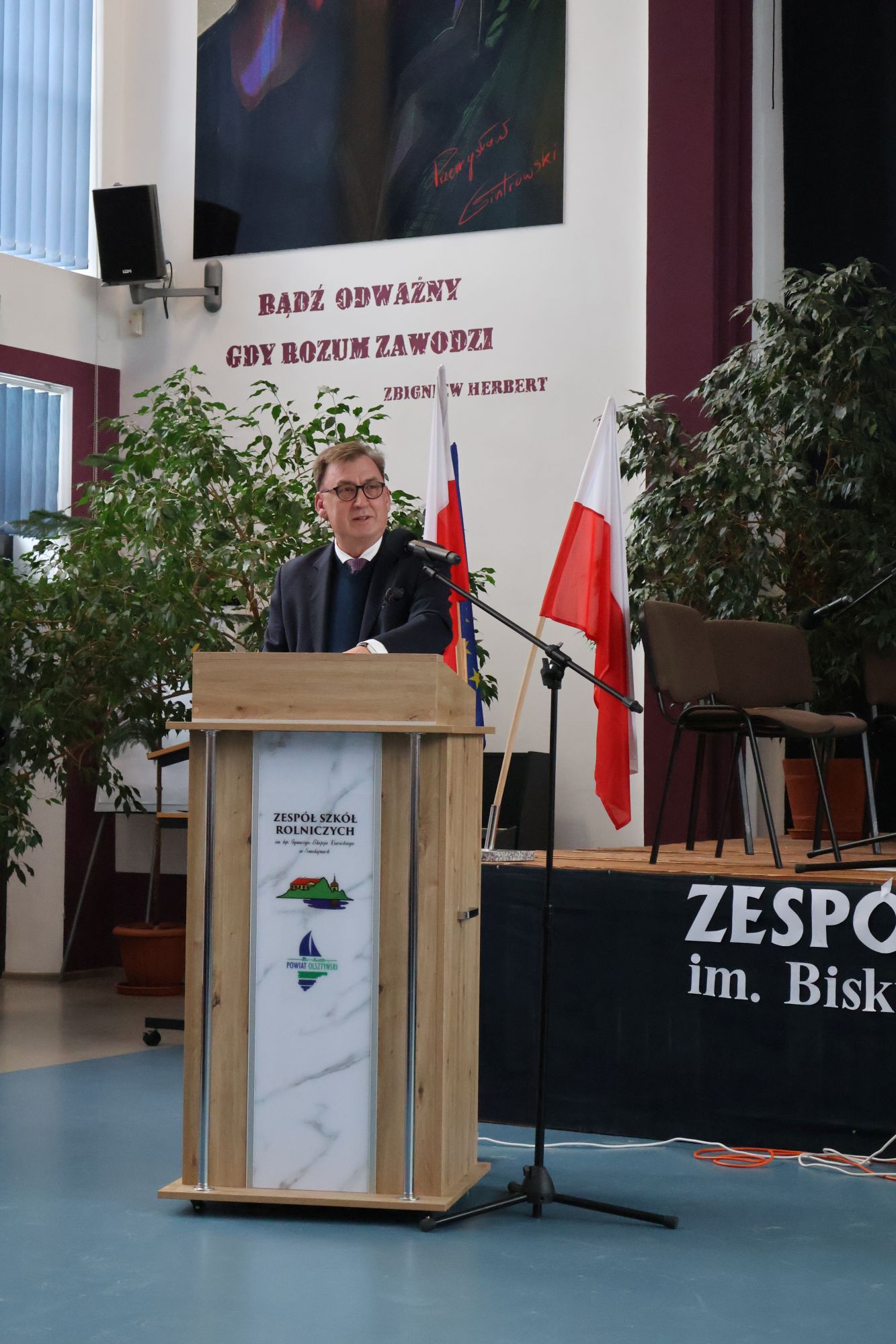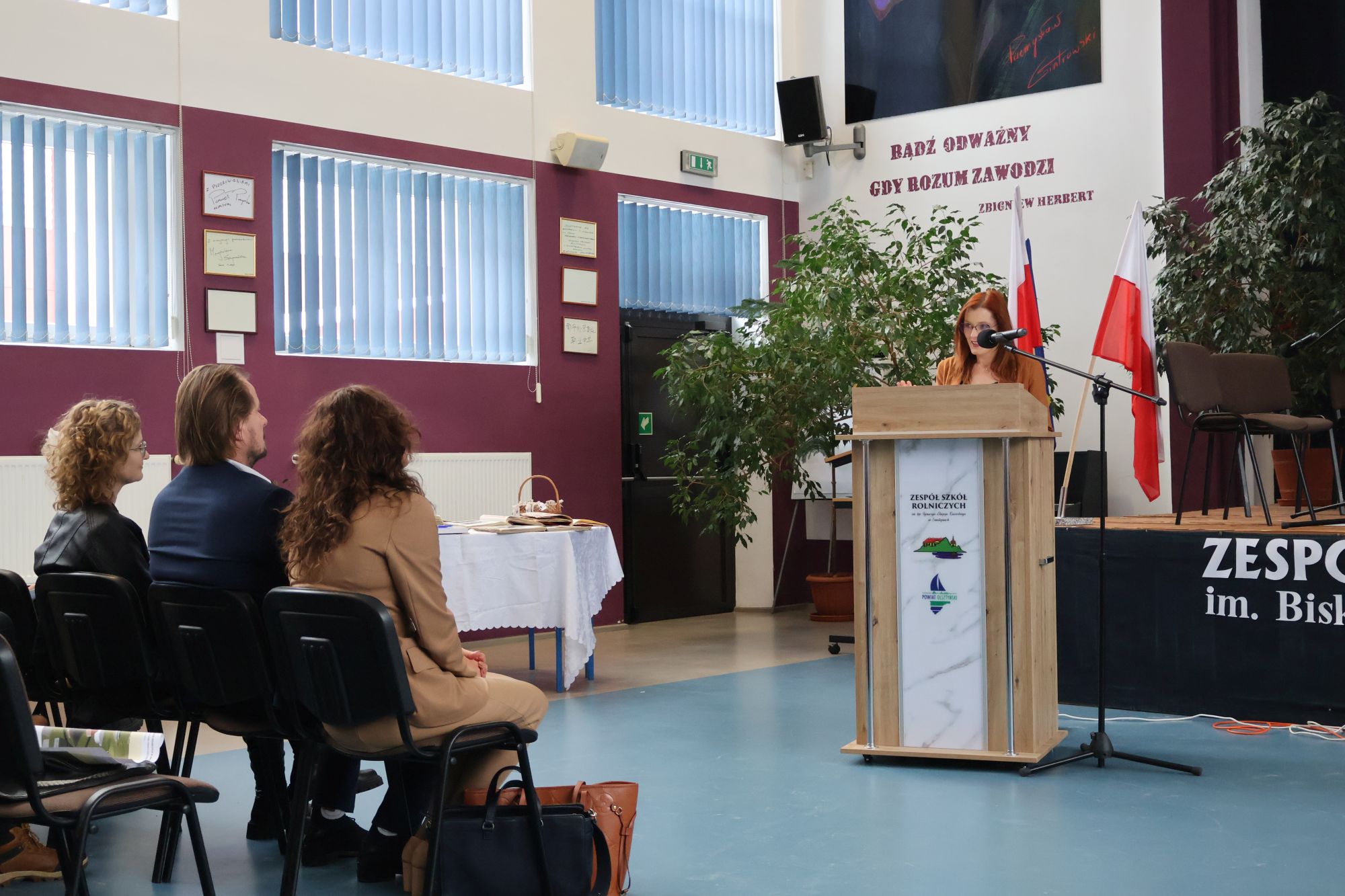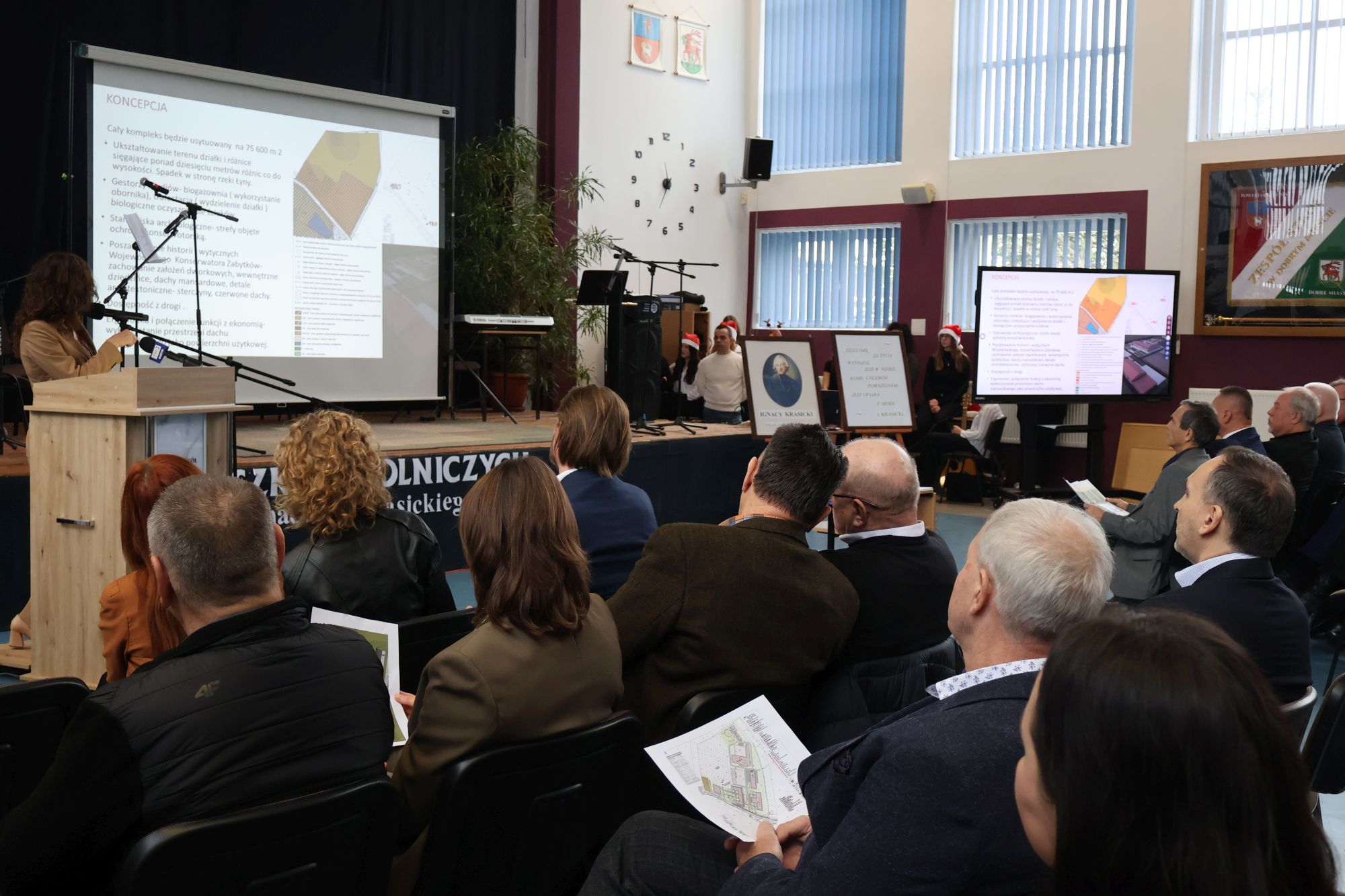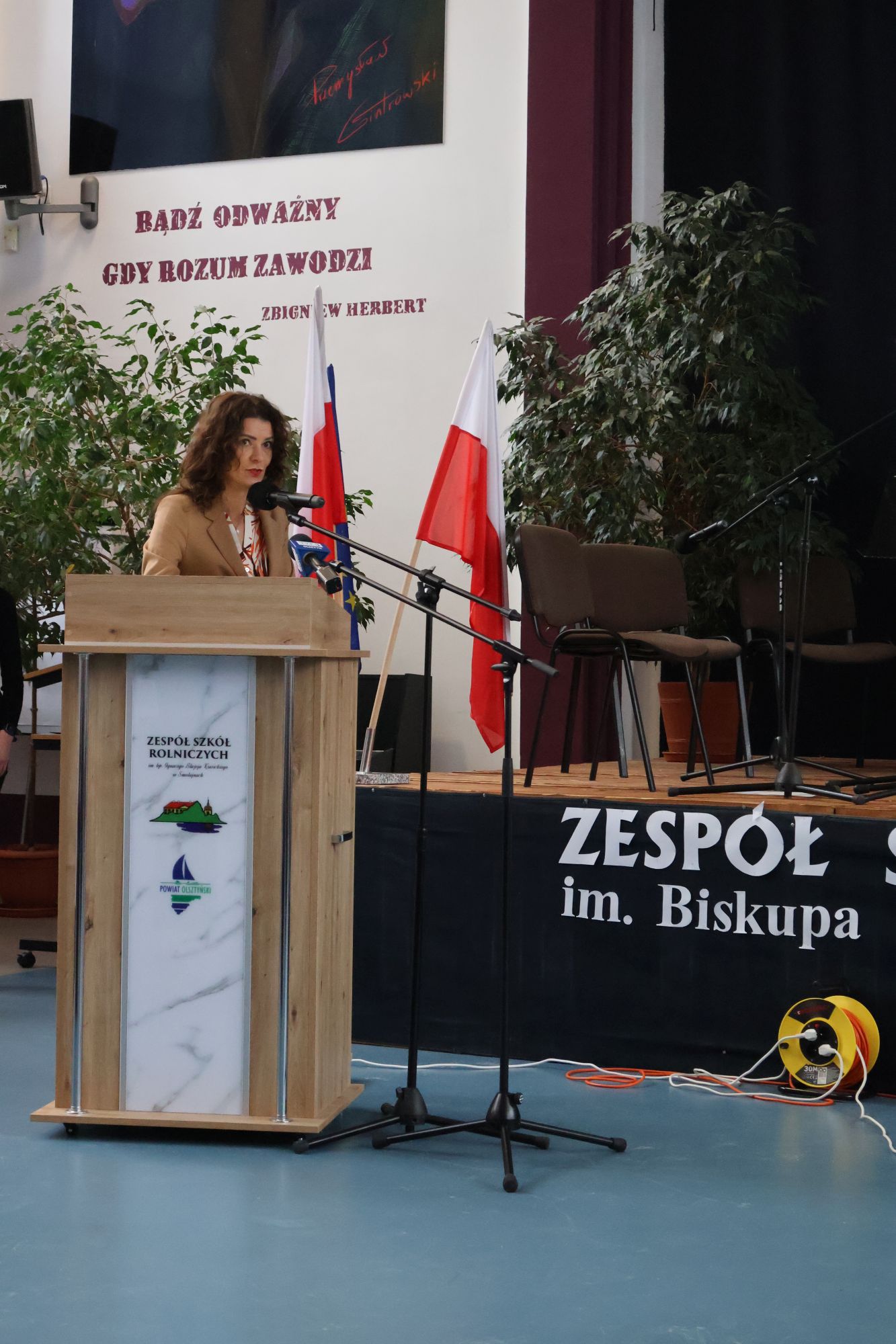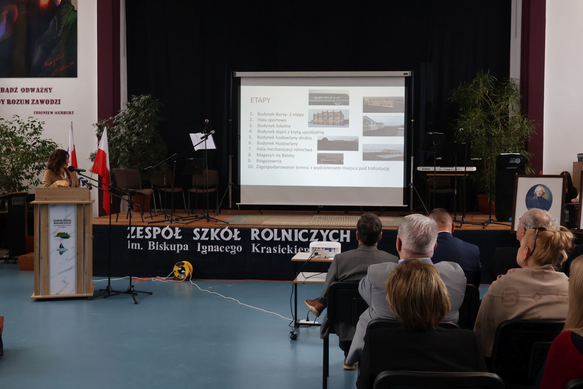 Dyrektor szkoły, Agnieszka Gołębiowska-Węckowicz, przedstawiła rys historyczny placówki, która istnieje od ponad 60 lat. – Największym atutem szkoły są jej absolwenci. Mury Zespołu Szkół Rolniczych opuściło ponad 3200 uczniów, obecnie uczy się tu 185 osób. Chcemy, by każda z nich miała zapewnione jak najlepsze warunki do zdobywania wiedzy i umiejętności. Z nadzieją patrzymy na program funkcjonalno-użytkowy i wierzymy, że za kilka lat będziemy otwierać drzwi do nowej siedziby – mówiła dyrektor szkoły.