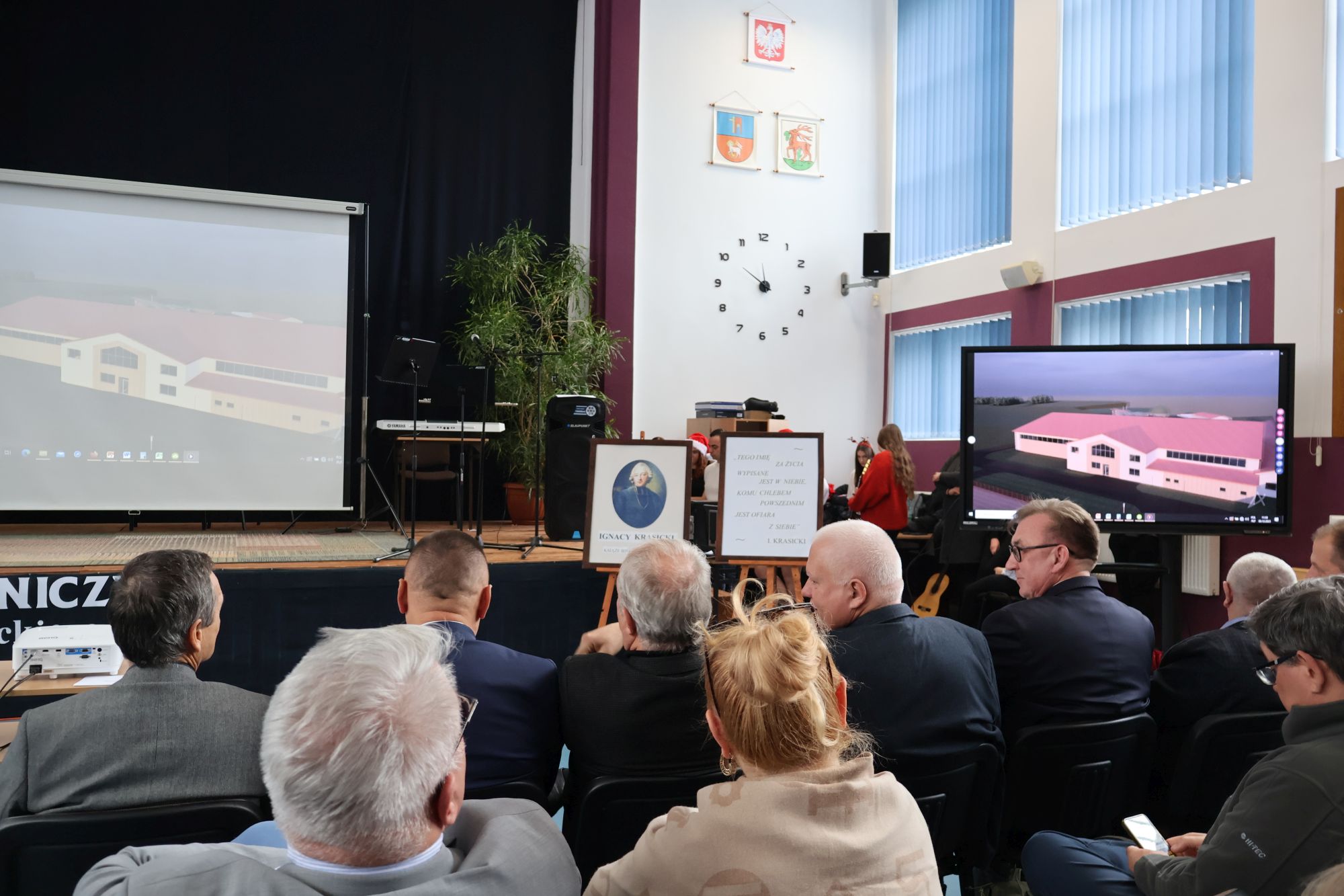 Koncepcję kompleksu budynków w ramach Zespołu Szkół Rolniczych przedstawiła Monika Jasińska, architekt Biura Projektowego Archenika sp. z o.o. z Poznania. – Wieś Smolajny powstała w XIII wieku, popularność zdobyła dzięki swojemu wybitnemu mieszkańcowi, biskupowi Ignacemu Krasickiemu. Postanowiliśmy połączyć nowoczesne rozwiązania z historią miejscowości, stąd w projekcie system dworkowy z dziedzińcami sprzyjającymi rozmowom i integracji, dach mansardowy, czerwony. Wykorzystujemy także naturalne ukształtowanie terenu. Cały kompleks jest usytuowany na powierzchni ponad 75,5 tys. m2. Obejmuje bursę dla stu osób, halę sportową, orlik z bieżnią, szkołę o powierzchni użytkowej 1825 m2, stajnię z krytą ujeżdżalnią i wybiegiem dla koni, budynki hodowli drobiu i innych większych zwierząt hodowlanych, halę mechanizacji rolnictwa, magazyn na baloty oraz biogazownię. Do tego zagospodarowanie terenu wokół wraz ze schodami i oświetleniem – wyjaśniła architekt, przedstawiając film z wizualizacją zaprojektowanego obiektu.