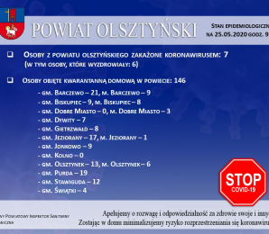 Podajemy stan epidemiologiczny w powiecie olsztyńskim na 25.05.2020 godz. 9:00.