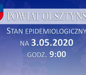 Podajemy stan epidemiologiczny w powiecie olsztyńskim na 3.05.2020 godz. 9:00. Przypominamy, że do odwołania na terenie RP obowiązuje zakaz zgromadzeń. Ograniczenie dotyczy organizowania m.in. spotkań, imprez, zebrań. Celebrujmy święto Konstytucji 3 Maja w domach, w gronie najbliższych!