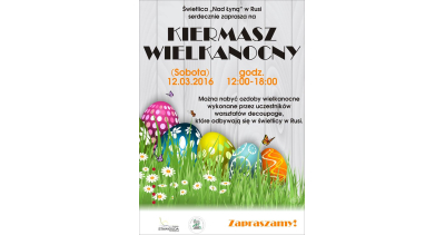Gminny Ośrodek Kultury w Stawigudzie zaprasza w sobotę 12 marca 2016 roku na Kiermasz Wielkanocny. Świetlica "Nad Łyną" w Rusi godz. 12:00-18:00.