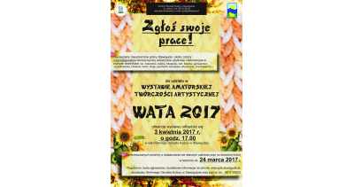 Gminny Ośrodek Kultury w Stawigudzie zaprasza twórców z gminy Stawiguda i okolic do zgłaszania prac na Wystawę Amatorskiej Twórczości Artystycznej WATA 2017. Zgłoszenia należy dokonać do 24 marca 2017. Więcej szczegółów i regulamin konkursu - pod linkiem.
