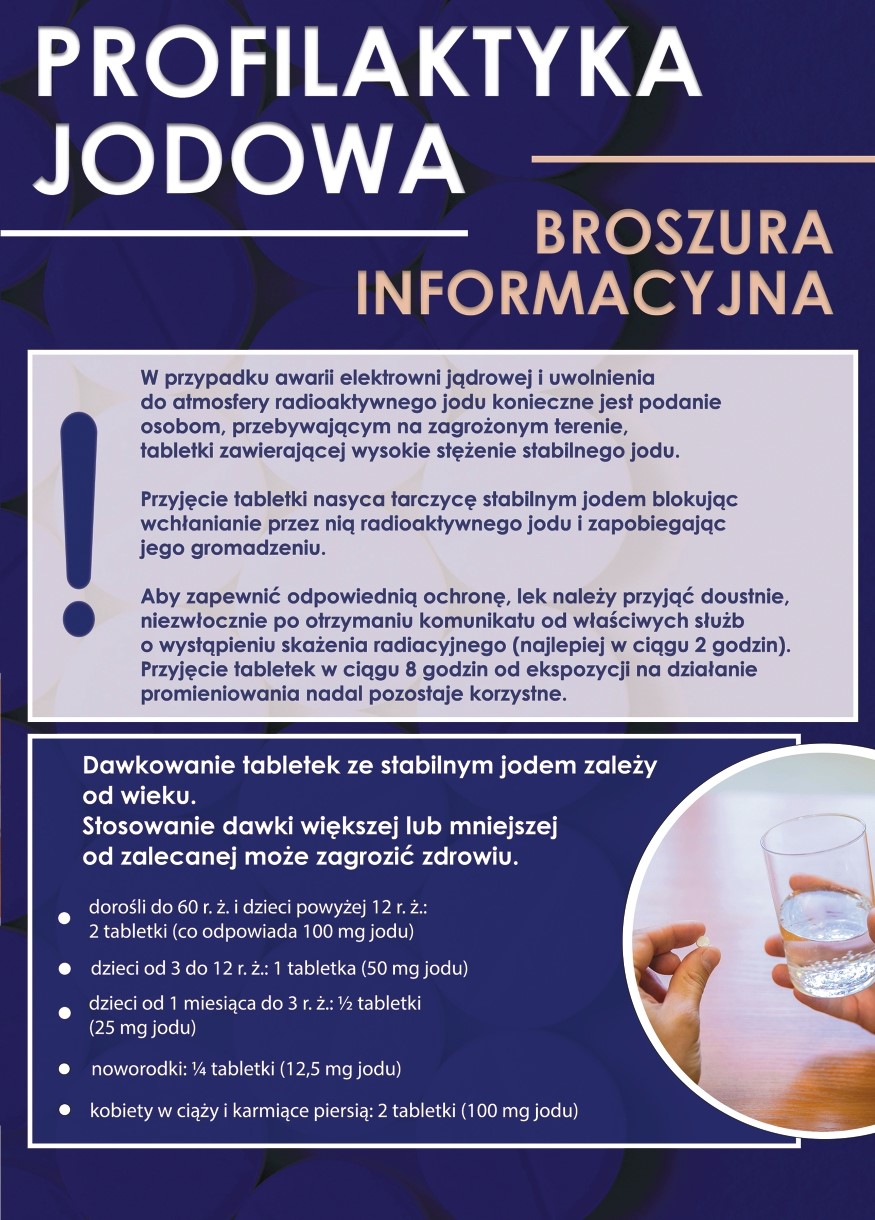W przypadku awarii elektrowni atomowej i uwolnienia do atmosfery radioaktywnego jodu konieczne jest podanie osobom, przebywającym na zagrożonym terenie, tabletki zawierającej wysokie stężenie stabilnego jodu.