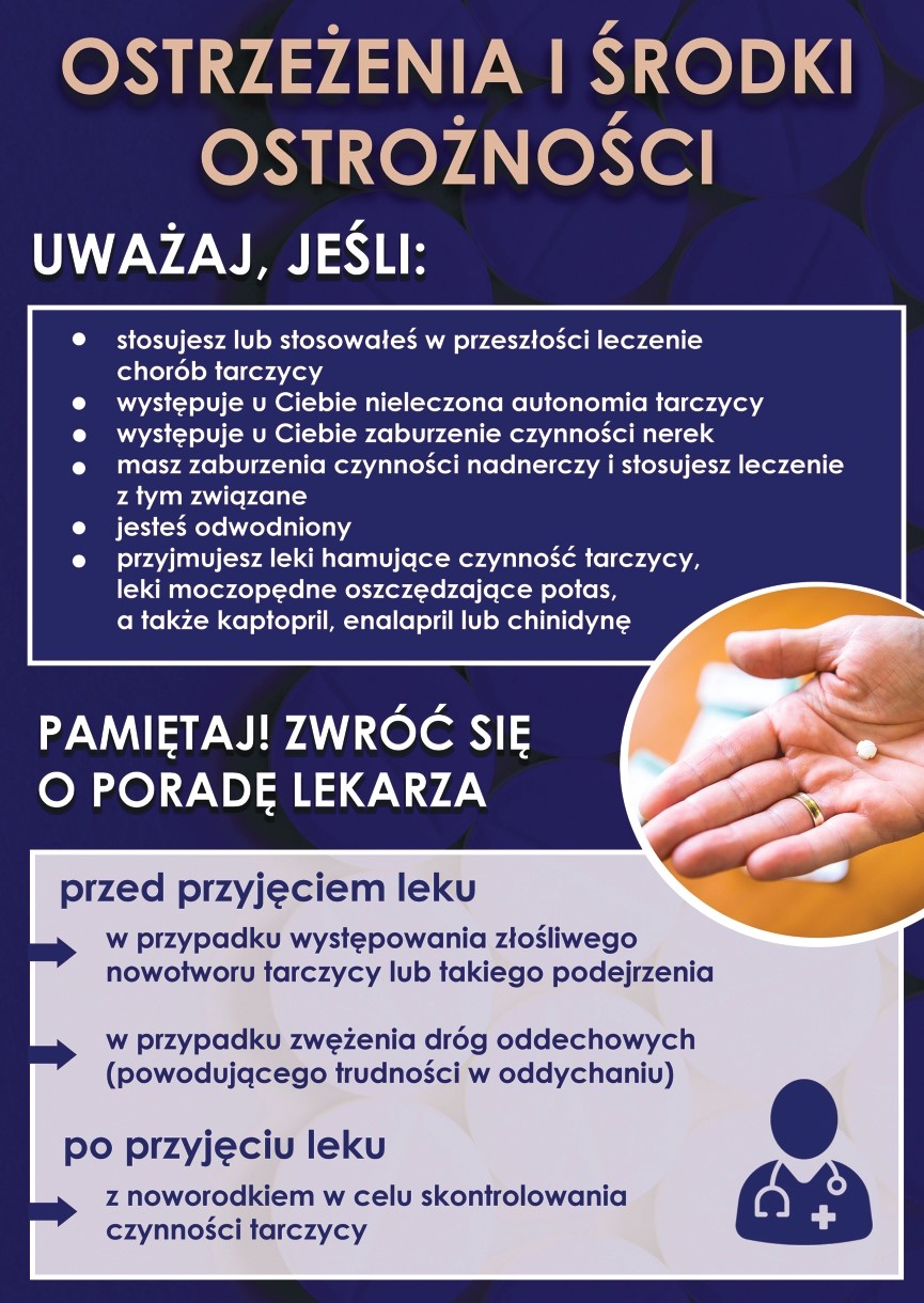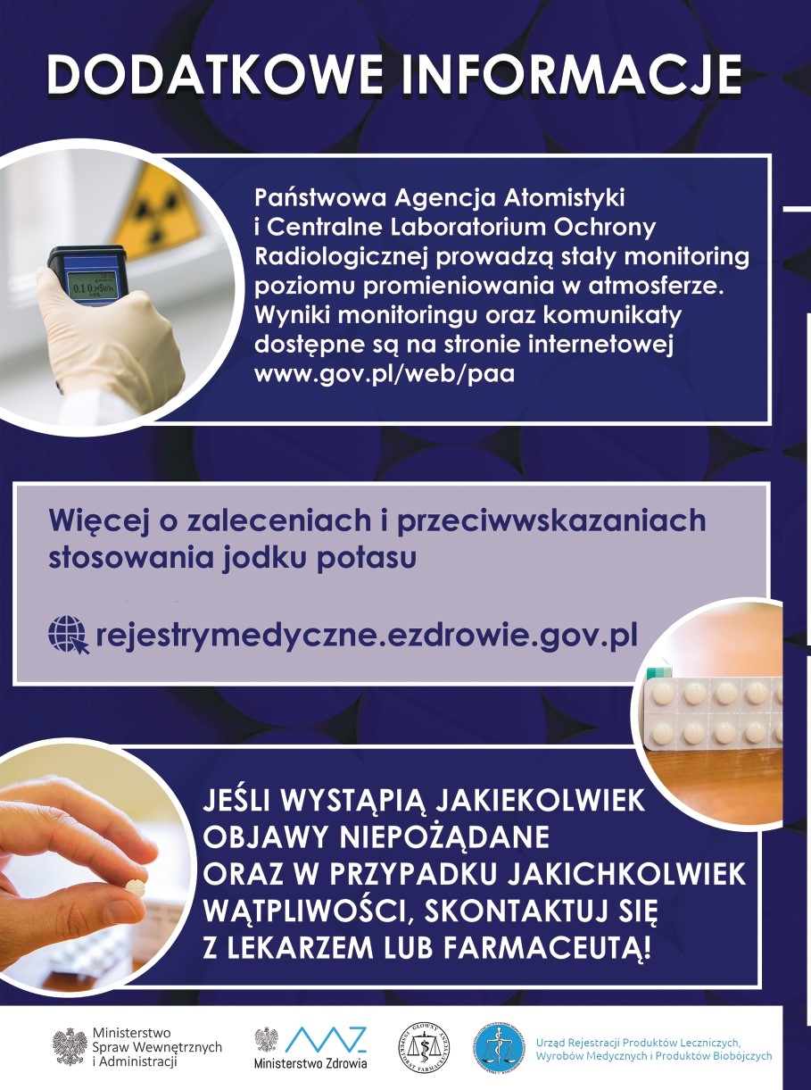 - Więcej o zaleceniach i przeciwwskazaniach stosowania jodku potasu: rejestrymedyczne.ezdrowie.gov.pl