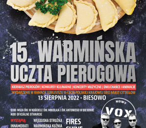 Rok 2022 jest wyjątkowy dla organizatorów Warmińskiej Uczty Pierogowej w Biesowie. – Po raz 15 organizujemy najsmaczniejszą imprezę w całym województwie. Ten jubileusz jest świadectwem ciężkiej i wytężonej pracy wielu osób. To zatem okazja do podziękowań, podsumowań i podwójnej zabawy, gdyż wydarzenie to odbędzie się także w ramach jubileuszu Polskiej Krajowej Sieci Miast Cittaslow, która też świętuje swoje 15-lecie. Tradycyjnie odbędzie się kiermasz pierogów i konkursy na najsmaczniejsze pierogi, nie zabraknie też atrakcji dla najmłodszych, stoisk z różnościami oraz solidnej dawki muzyki – zapowiada Kamil Kozłowski, burmistrz Biskupca.