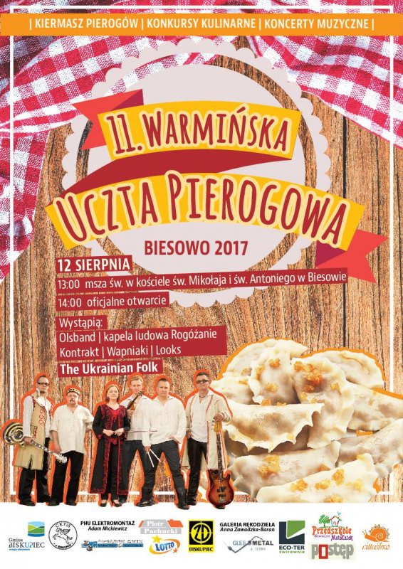 Gmina Biskupiec zaprasza w sobotę 12 sierpnia na 11. Warmińską Ucztę Pierogową, która tradycyjnie jak co roku odbędzie się w Biesowie.