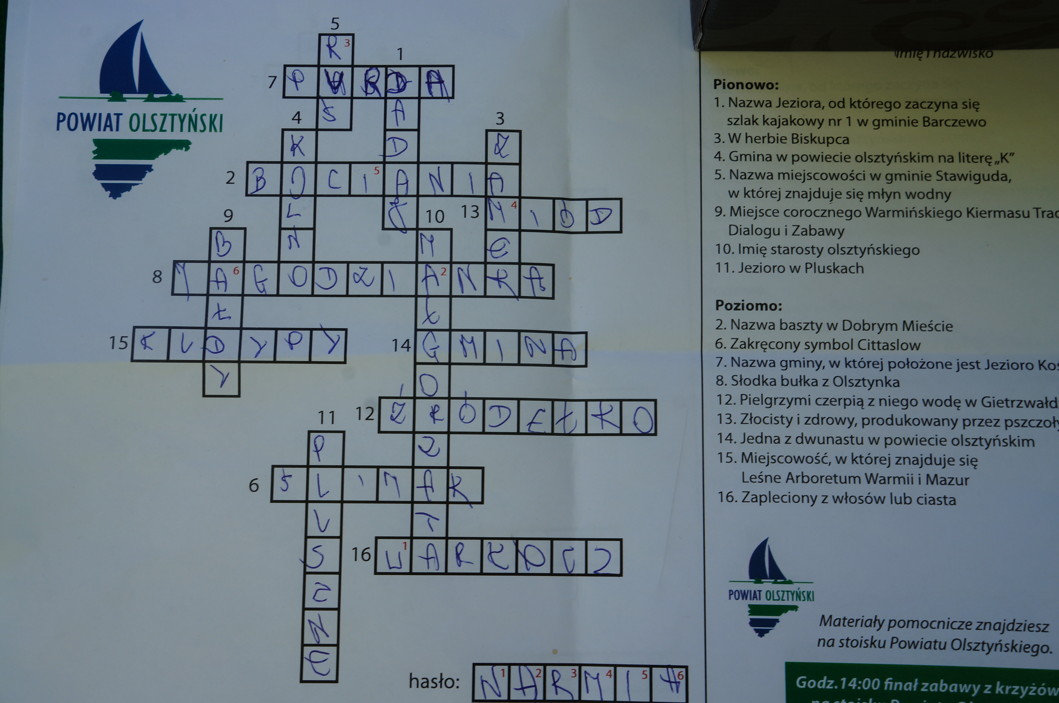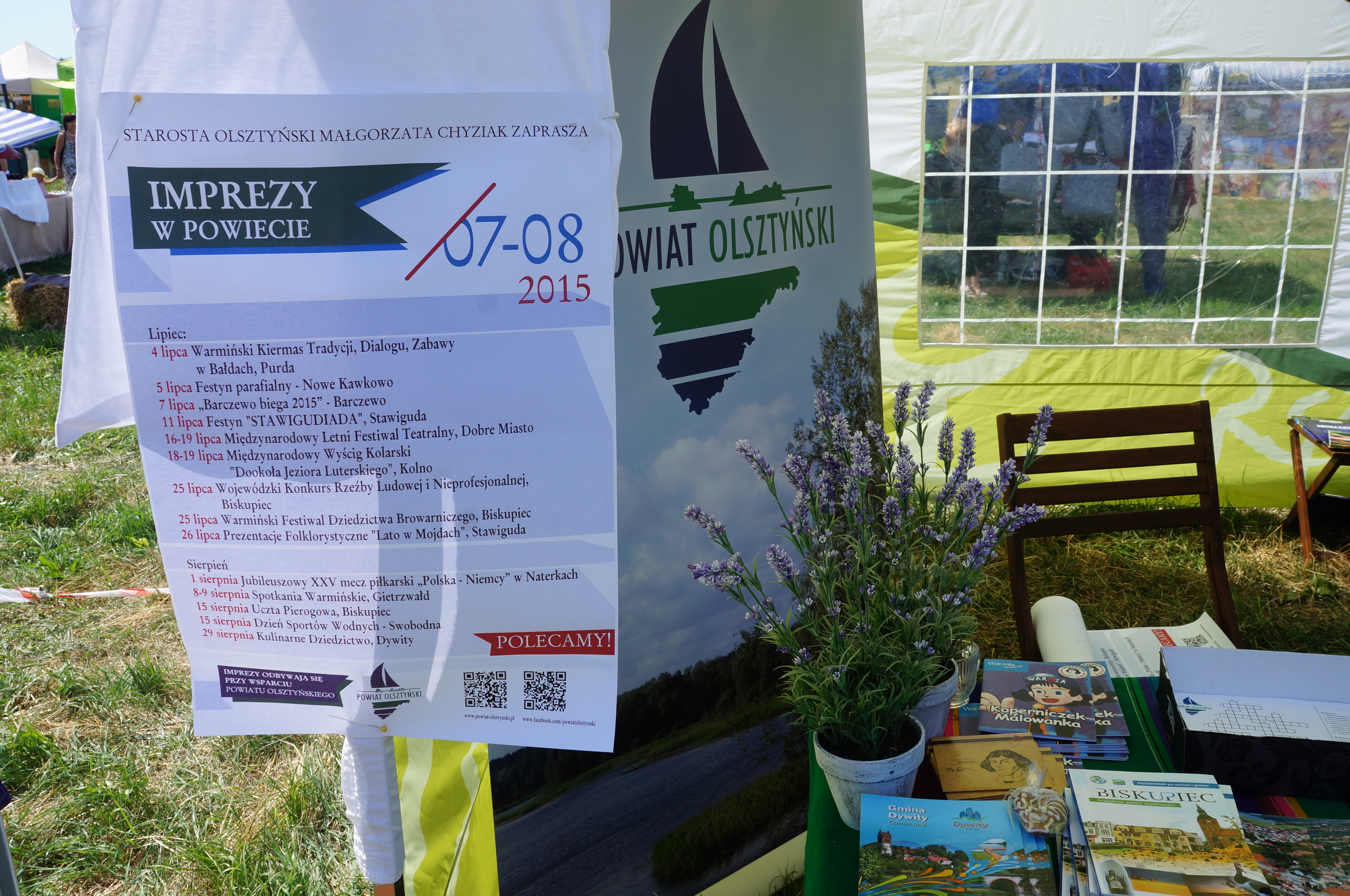 Powiat Olsztyński, czynnie uczestniczył w Kiermasie. Stoisko cieszyło się bardzo dużym zainteresowaniem ze względu na materiały, jakimi dysponowało. Dwanaście gmin Powiatu Olsztyńskiego, w jednym miejscu: foldery, ulotki, mapy, przewodniki i gadżety promujące gminy. Uczestnicy mogli również poszerzyć swoją wiedzę o powiecie, rozwiązując krzyżówkę tematycznie związaną z naszym regionem. Wśród osób, które prawidłowo ją rozwiązały rozlosowaliśmy 5 zestawów gadżetów promocyjnych.