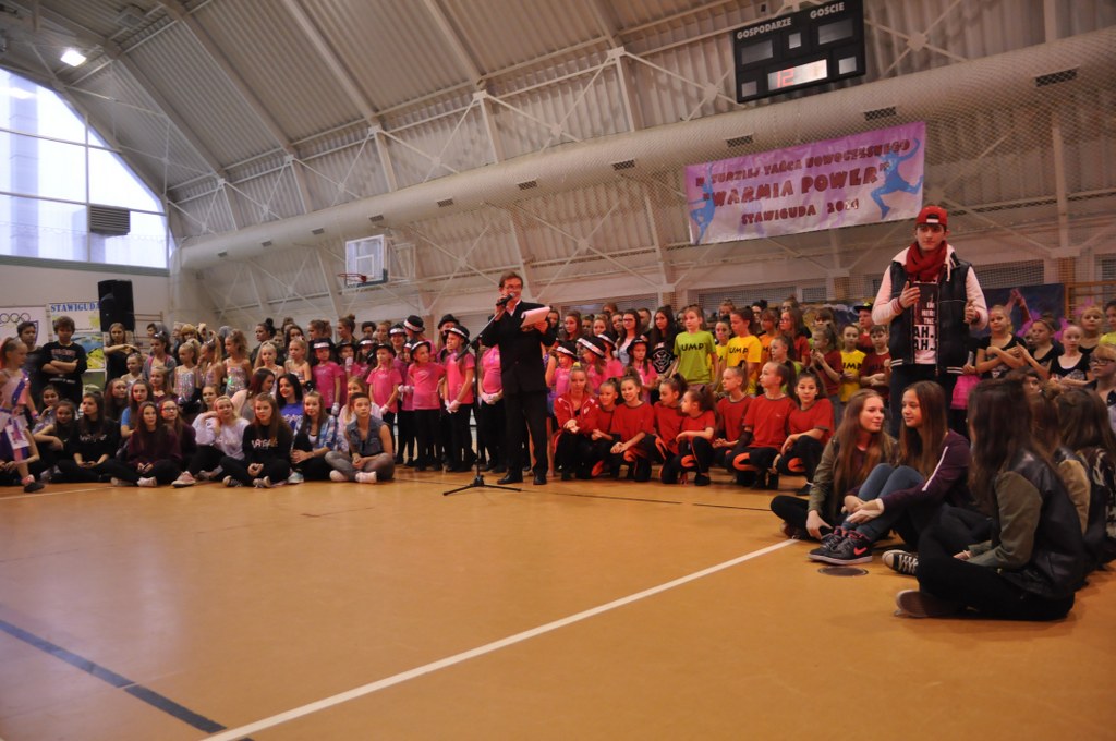 15 listopada hala sportowa gimnazjum w Stawigudzie wypełniła się roztańczoną młodzieżą, a to za sprawą 4. edycji Turnieju Tańca "Warmia Power 2014". W imprezie wzięło udział 16 zespołów i ponad 30 solistów - w sumie 220 osób. Mimo, że turniej rozpoczynał się o godz. 12, pierwsi uczestnicy pojawili się już kilka godzin wcześniej. Każdy chciał na spokojnie sprawdzić warunki techniczne, wypróbować parkiet, czy spotkać się ze znajomymi z wielkiej tanecznej rodziny. Tradycyjnie w samo południe nastąpiło uroczyste otwarcie "Warmia Power 2014" od krótkiej tanecznej prezentacji wszystkich zespołów i solistów biorących udział.