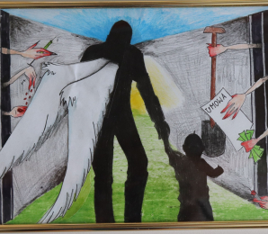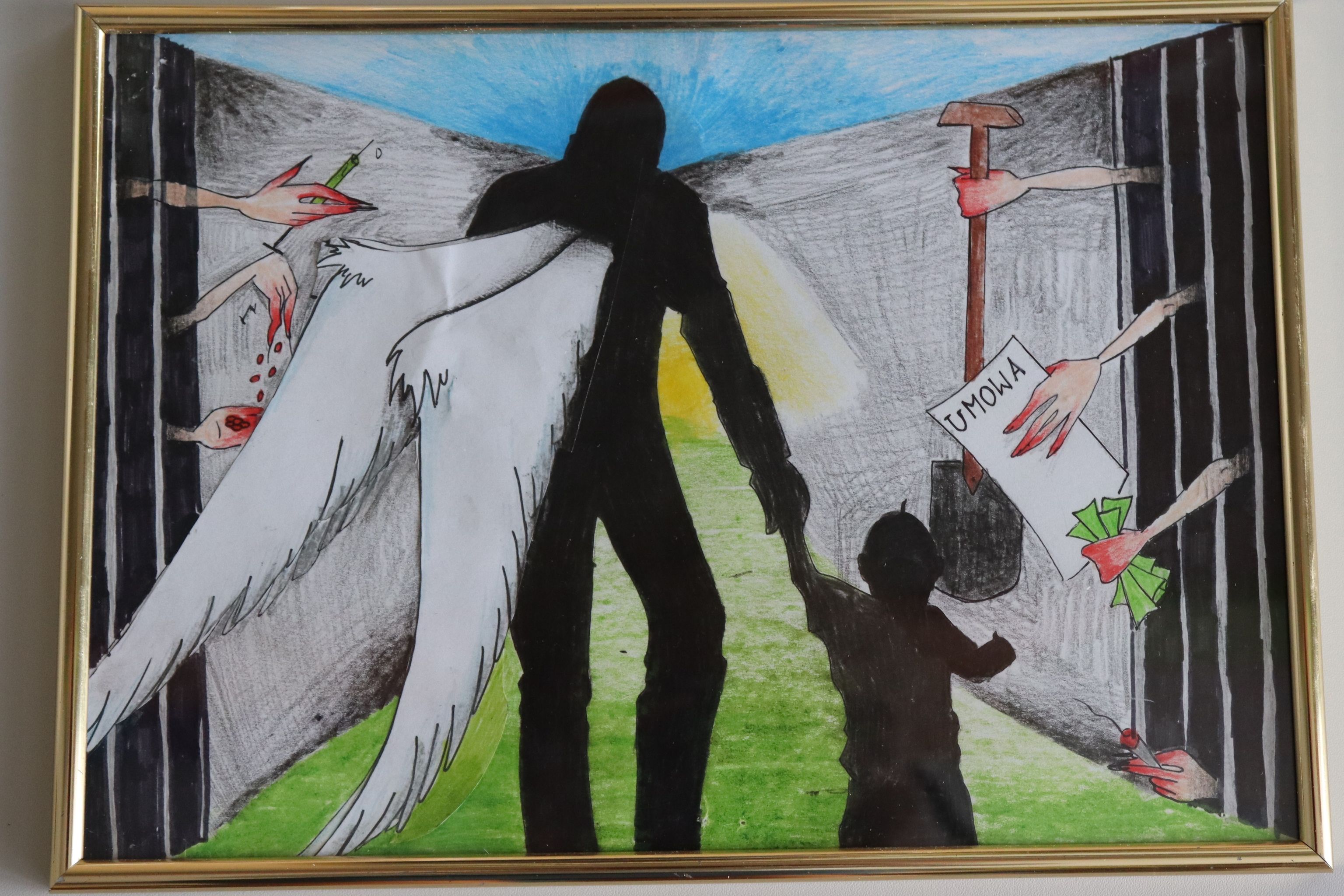 Zwycięski rysunek w poruszający sposób prezentuje spojrzenie młodego człowieka na prawa dzieci. - Mój obraz przedstawia anioła stróża trzymającego za rękę dziecko. Anioł symbolizuje osobę dorosłą, która prowadzi przez życie dziecko i chroni je przed czyhającymi na nie niebezpieczeństwami, takimi jak narkotyki, wyzyskiwanie, zbyt ciężka praca czy praca, która uniemożliwia naukę – opowiadał o swoim rysunku Mateusz.