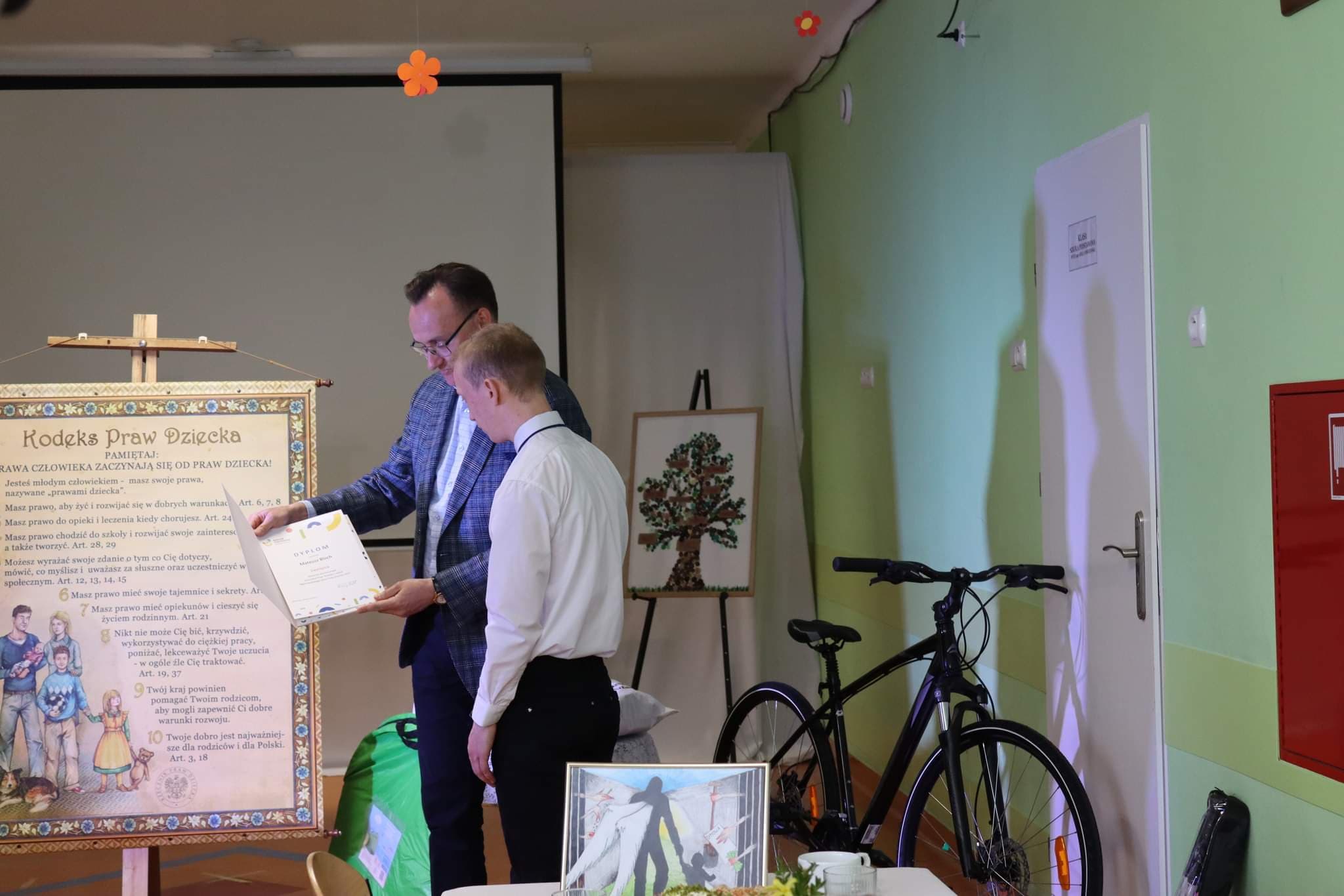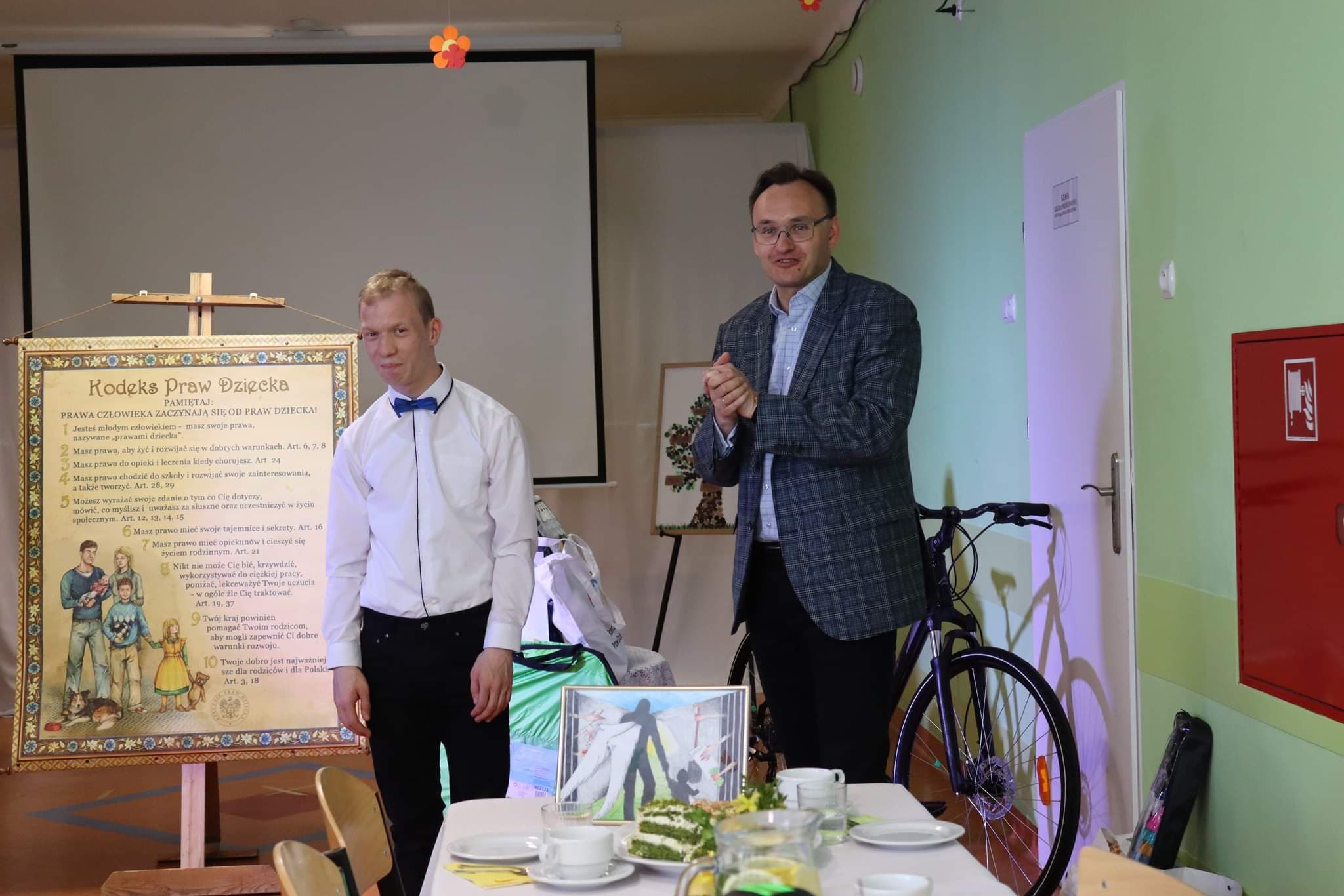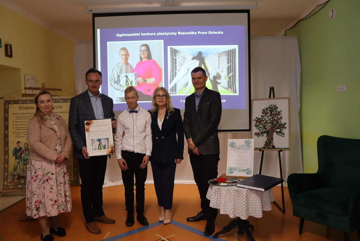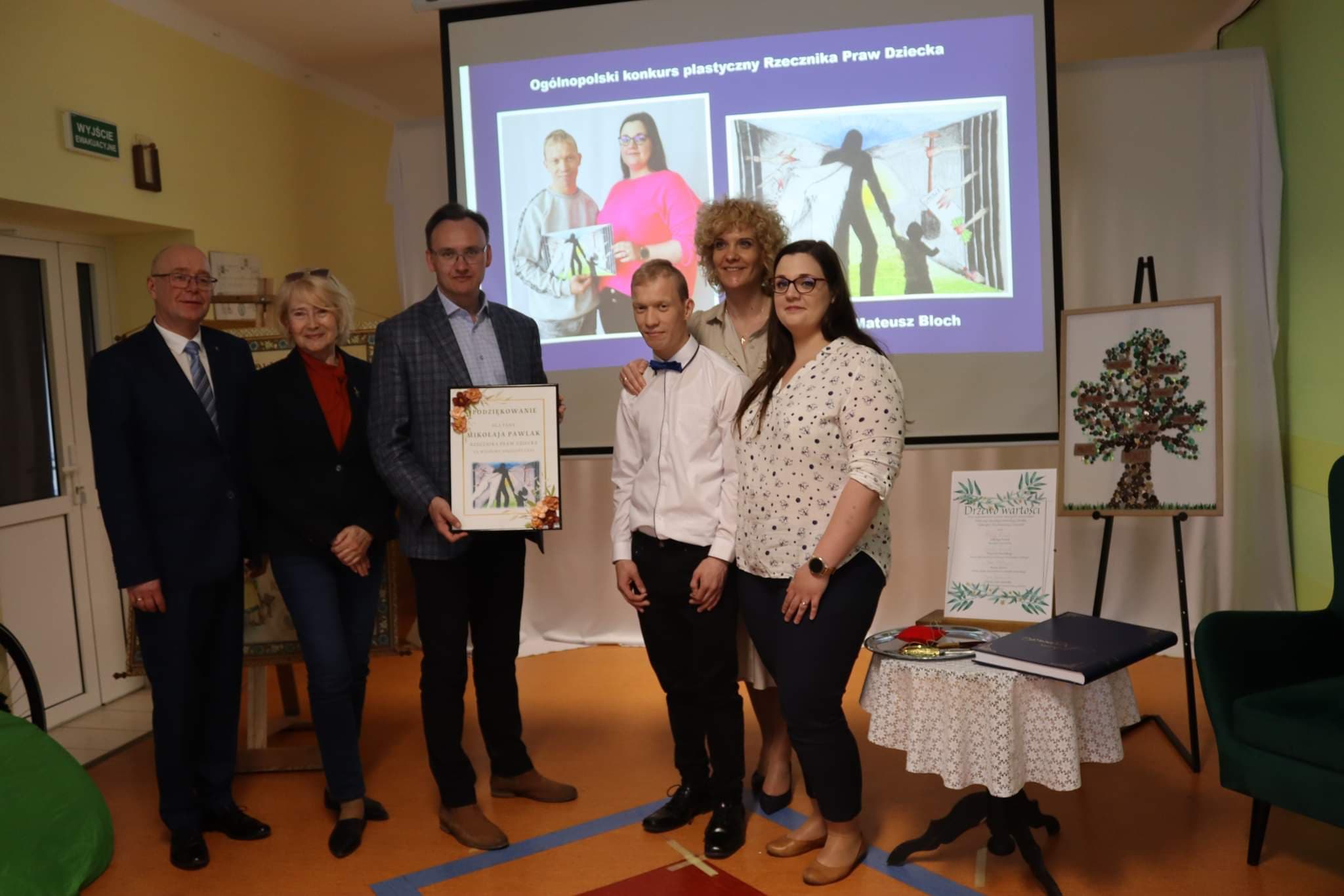 Ostatni sukces Mateusza napawa dumą jego samego, jak i całą kadrę Ośrodka. Chłopiec zwyciężył bowiem w konkursie Rzecznika na najciekawsze prace plastyczne związane tematycznie z prawami dziecka. Wręczenie nagrody nastąpiło w murach szkoły w Kruzach, czego dokonał osobiście Rzecznik Praw Dziecka. - Było tysiące prac, jednak te, które wygrywały, wygrywały jednomyślnie… Czasem obraz przemawia bardziej niż spisane konwencje. Dziękuję ci bardzo za Twoją pracę – zwrócił się do laureata Mikołaj Pawlak.
