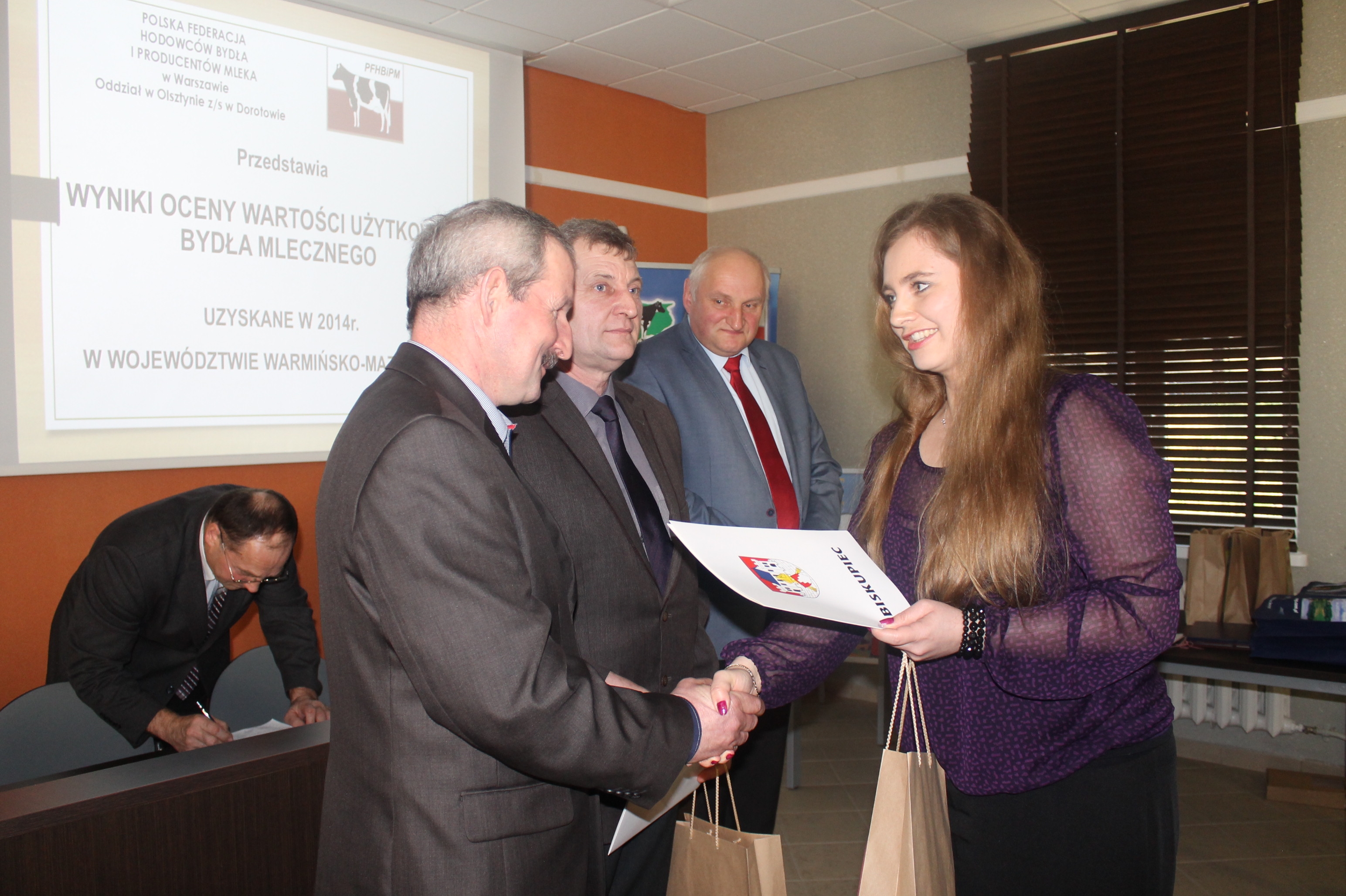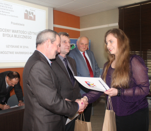 Katarzyna Nowakowska, zastępca burmistrza Biskupca, wyróżniła mieszkańców gminy za wyróżniającą się działalność w zakresie produkcji mleka. 18 marca w siedzibie Warmińsko-Mazurskiego Ośrodka Doradztwa Rolniczego w Olsztynie odbyło się spotkanie hodowców bydła mlecznego z naszego województwa, w trakcie którego zostały zaprezentowane wyniki produkcji za rok 2014, została też podsumowana działalność kół terenowych W-MZHBM.