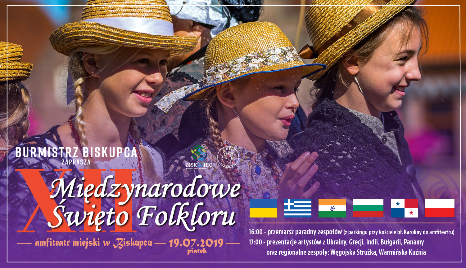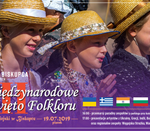 Międzynarodowe Święto Folkloru to impreza ciesząca się od lat wielką sympatią mieszkańców i turystów. Będzie to jak zwykle świetna okazja do poznania i porównania dziedzictwa kulturowego różnych krajów, prezentowanego przez muzyków, śpiewaków i tancerzy na najwyższym poziomie. Tradycyjnie występy w amfiteatrze poprzedzi przejście artystów przez centrum miasta. Goście po drodze będą prezentować swoje umiejętności wokalne i taneczne. O godz. 17:00 w amfiteatrze miejskim rozpocznie się widowisko tańca i muzyki. Tym razem do Biskupca przyjadą artyści z Ukrainy, Grecji, Indii, Bułgarii i Panamy. Zobaczyć będzie można także regionalne zespoły: Węgojską Strużkę i Warmińską Kuźnię.