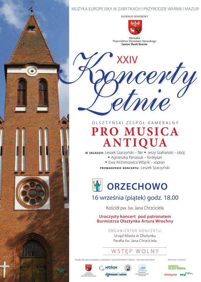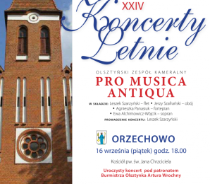 Gmina Olsztynek zaprasza w piątek 16 września na XXIV Koncerty Letnie w Orzechowie, gdzie wystąpi olsztyński zespół kameralny Pro Musica Antiqua.
