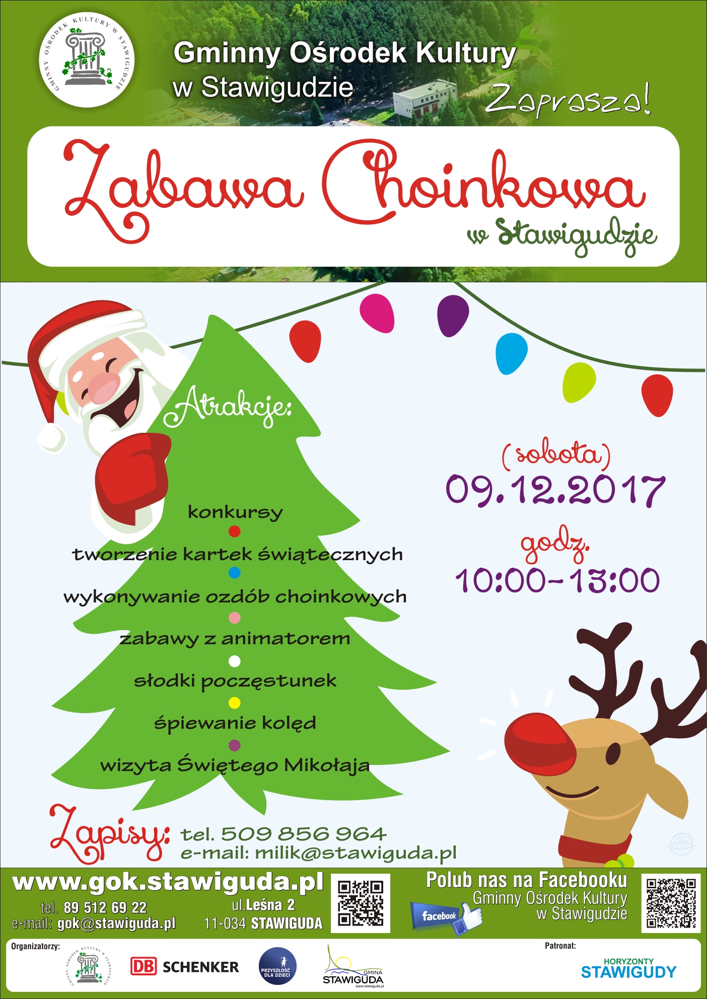 Gminny Ośrodek Kultury w Stawigudzie zaprasza w sobotę 9 grudnia o godz. 10:00 na zabawę choinkową.
