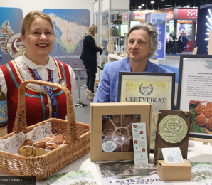 - Warmia jest nie tylko piękna krajobrazowo, ale też oferuje wiele atrakcji, w tym kulinarne. Dlatego zaprosiliśmy do współpracy samorządy ze Szlaku Świętej Warmii oraz lokalnych przedsiębiorców i rzemieślników. Odpowiedziały na nie Olsztynek, Frombork i Gietrzwałd oraz Zakłady Mięsne "Warmia", Polka Warmia, Kawiarnia Moja, You by Tokarska, Suszarnictwo Kraftowe Walkiewicz, ZULI - Miodosytnia Warmińska, Zielono mi, fundacja Mangalica, Pani Jesień. Stworzyliśmy im przestrzeń do promowania swojej działalności, za którą otrzymali Kunsztyk Warnijski, czyli certyfikat potwierdzający oryginalność i wysoką jakość usług lub produktu. Swoimi produktami wsparła nas też Jutrzenka Dobre Miasto, a Muzeum Etnograficzne w Olsztynku pomogło w dekoracji wnętrza naszego stoiska - mówi Andrzej Abako, starosta olsztyński i przewodniczący stowarzyszenia Szlak Świętej Warmii.