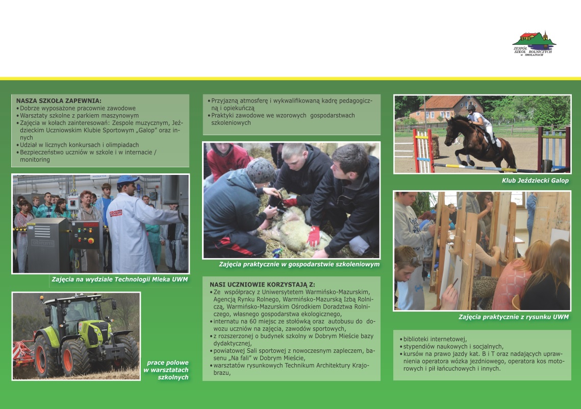 Atuty szkoły to nowa baza dydaktyczna przy ul. Fabrycznej 6a w Dobrym Mieście, a także bezpieczna i twórcza nauka, młoda kadra wysoko wykwalifikowanych nauczycieli, biblioteka multimedialna i pracownie komputerowe, własna stadnina koni z klubem "Galop" i inne... Do tego szereg atrakcyjnych kierunków kształcenia! Dane teleadresowe: